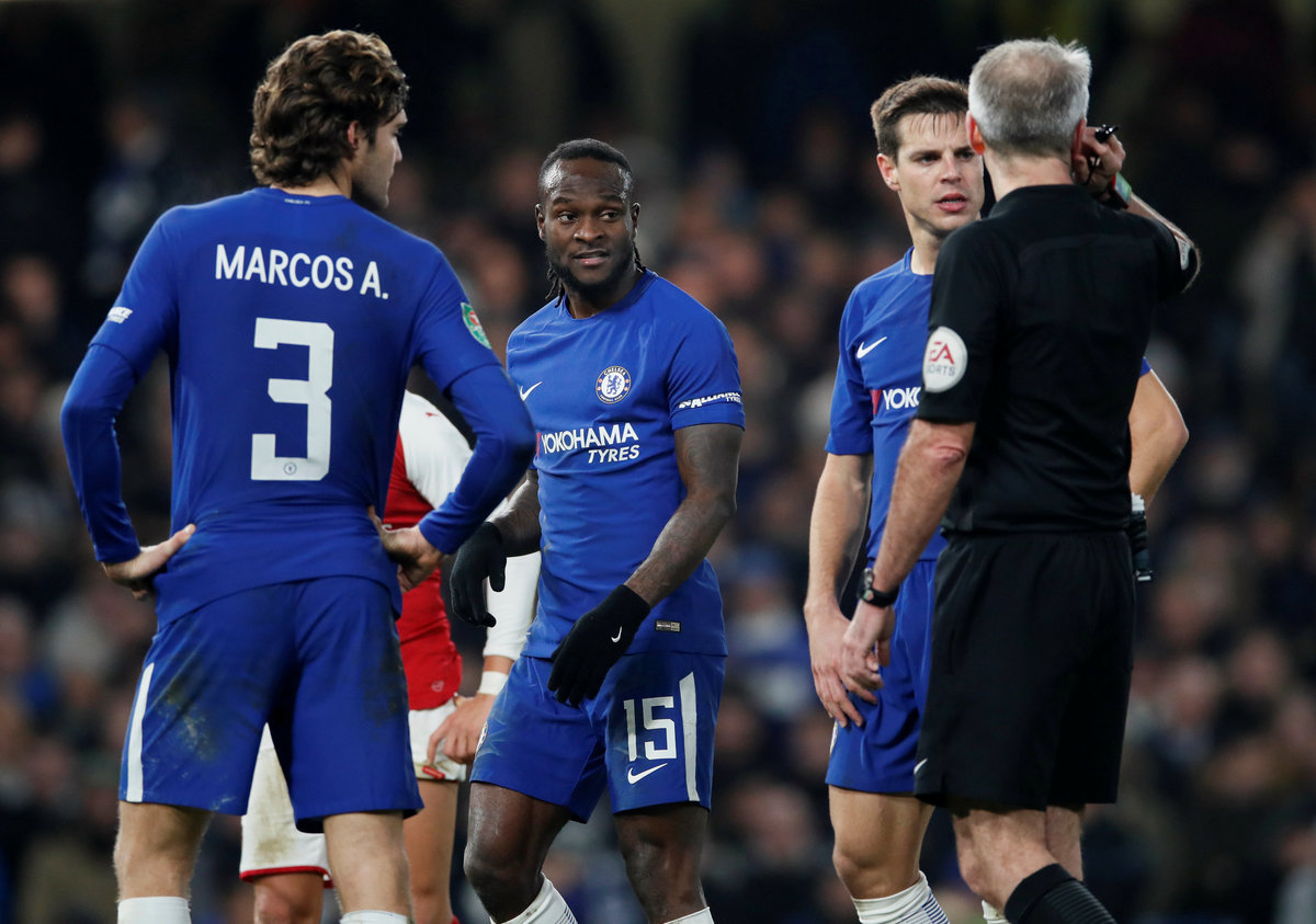 LONDON (Reuters) - Chelsea missed a string of chances to draw 0-0 at home with Arsenal in the first leg of their League Cup semi-final on Wednesday as the video assistant referee (VAR) stoked the tension with two important interventions.