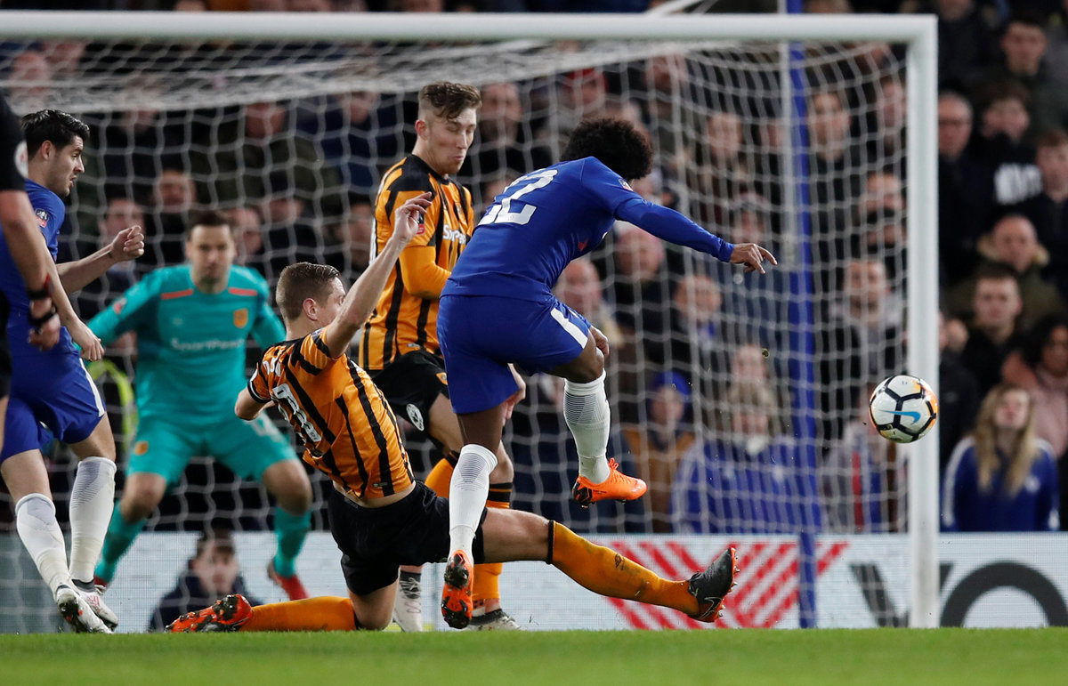 Willian needed only two minutes to give Chelsea the lead against Hull, curling the ball in with his left foot from the edge of the penalty area.