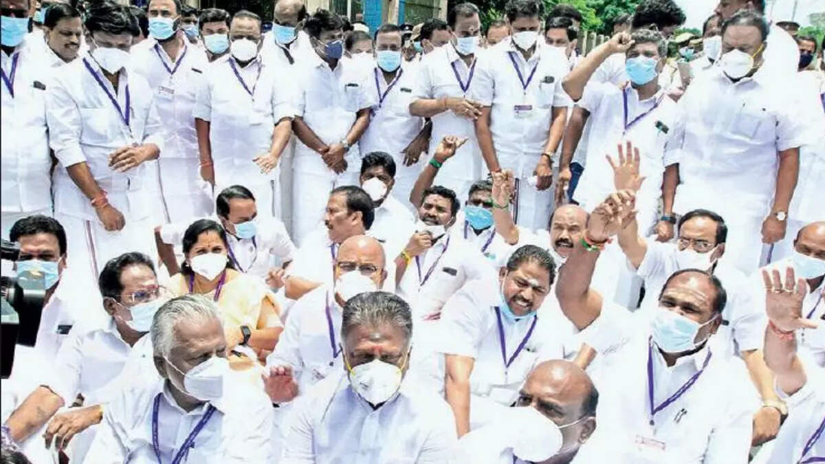 CHENNAI: The city police took AIADMK legislators including former chief minister O Panneerselvam into preventive custody on Tuesday after they blocked road in front of Kalaivanar Arangam, where the assembly session is being held, protesting against the government’s decision to scrap Dr J Jayalalithaa University and merge it with Annamalai University.