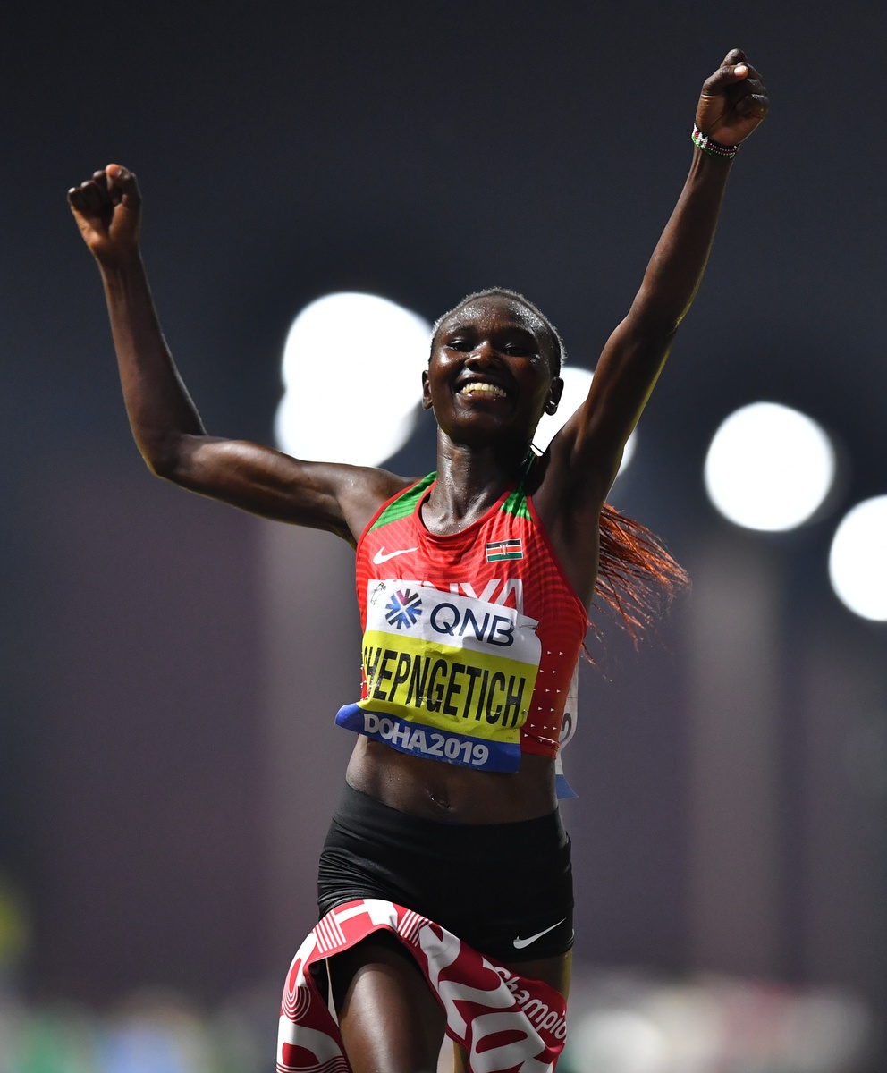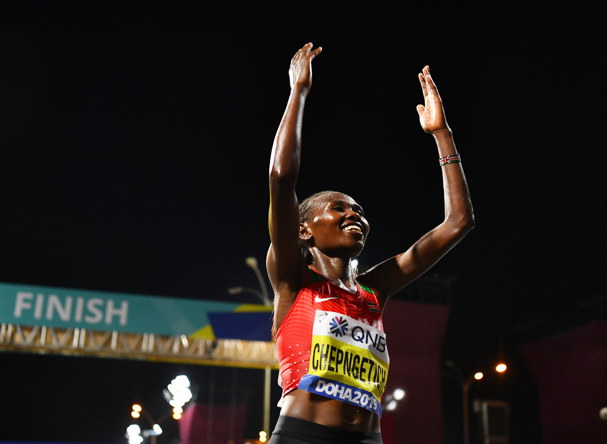 At 10km Chepngetich upped the pace, blowing apart the field but made her move too early and the Kenyan was reeled back in by the chasing pack that included team mates double world champion Edna Kiplagat and Visiline Jepkesho.