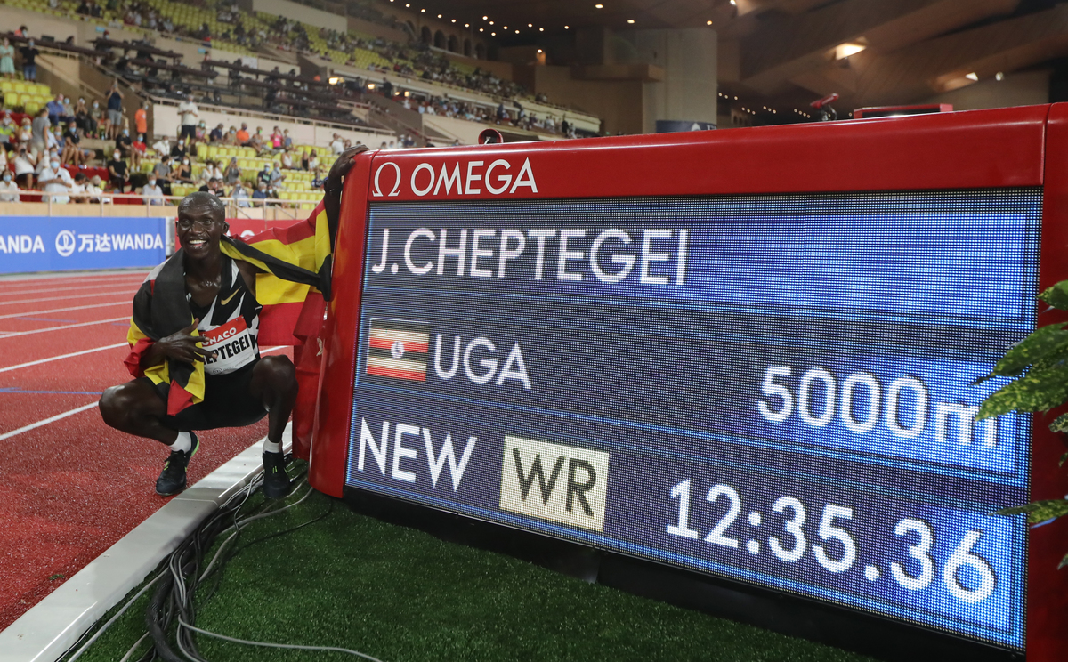 Uganda's Joshua Cheptegei produced a brilliant display of solo running to break Kenenisa Bekele's 16-year-old 5,000 metres world record by almost two seconds as athletics returned with a bang at the Monaco Diamond League meeting on Friday.