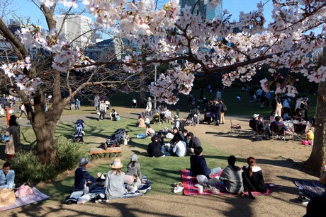 As the trees come into full bloom, people traditionally enjoy picnics under the cherry trees, in a ritual called hanami that translates as “flower viewing”.