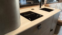 The drop in the range figure likely comes from the fact that Coachmen’s RVEX is fully kitted out in the back, while the base BrightDrop is an empty van. Speaking of the kit, the new electric RV has a lounge area with dual sofas that recline to become either one king-size bed or two individual single-person beds. There’s also a kitchen with a sink, a stovetop, a convection microwave and a refrigerator.