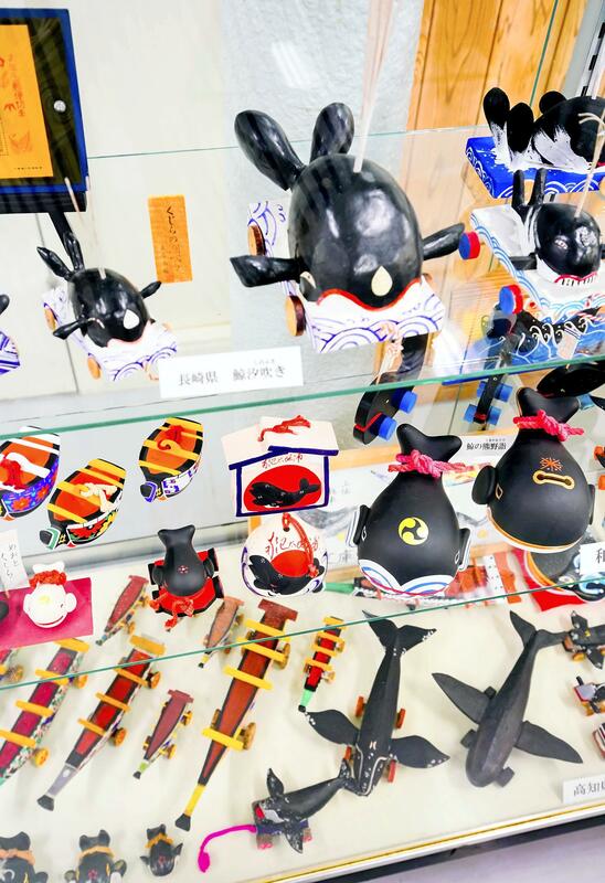 Among the displays are folk toys from all over Japan, including Nagasaki, Kochi and Miyagi prefectures. Japanese people believed whales that drifted ashore were a blessing from the sea.