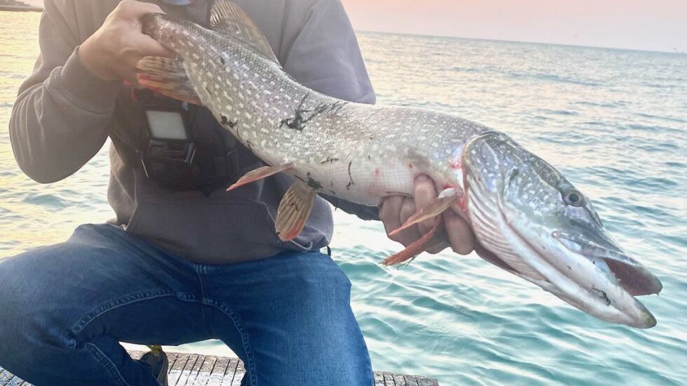 Bart Piet emailed the photo of one of two big northern pike caught from Montrose Harbor on Thursday. He was targeting pike.