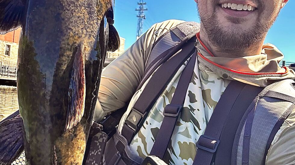 It was easier to keep fishing the whole day because I had some success in all 5 towns. Caught about 40 fish total that day, all on a white ned rig, white square bill & a black whopper plopper. Water clarity was generally somewhere between stained and murky. Found some really nice smallies throughout that stretch, and the bass seem to be getting a little bit fatter the last week… best fish that day was this surprise flathead that hit a squarebill mid-afternoon in Batavia.