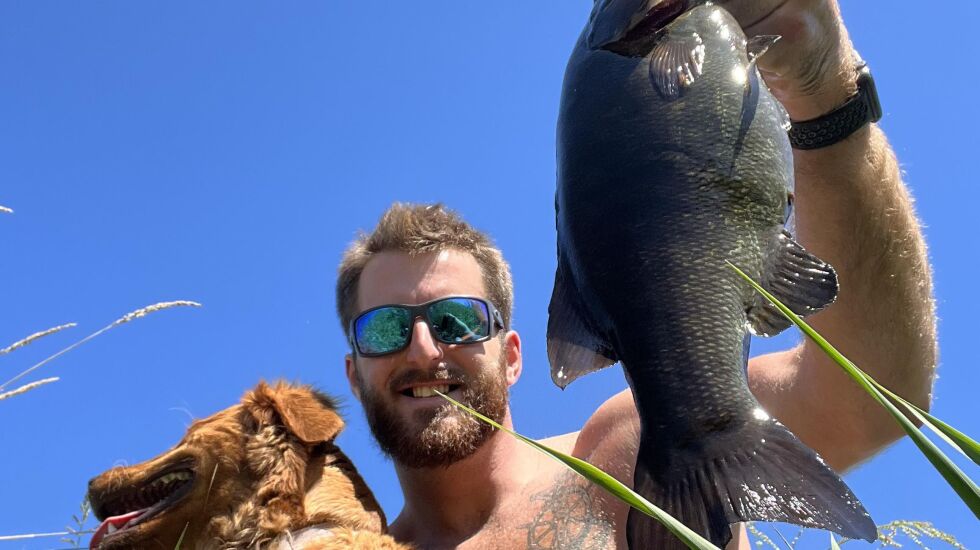 I think his girlfriend’s golden retriever Rory is enjoying the catch as much as Cwiok.