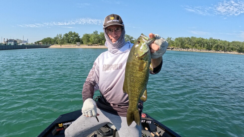 Hi Dale - fished southern Lake Michigan out of Hammond marina Sunday.My Son Jake boated a beautiful Steelhead and his wife and I also caught a dozen smallmouth, Jake added to that count as well. Overall a good quantity day but quality of bass could have been better. Fish were caught using Ned rigs along jig and trailers resembling crawfish and gobies. Water temps by discharge were at 80 and 73 degrees in other areas.
