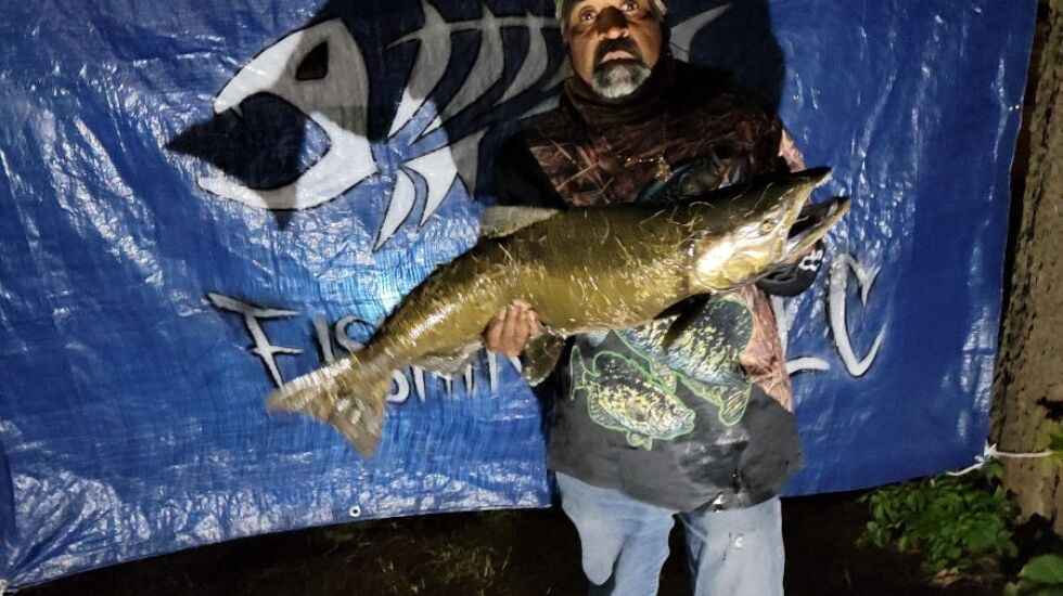 Capt. Dan Leslie at the Salmon Stop in Waukegan said shore fishing has Chinook “in thick and you can see them” and a couple steelhead; spawn, skein and “big baits that will piss them off” (big rattling baits) are best.