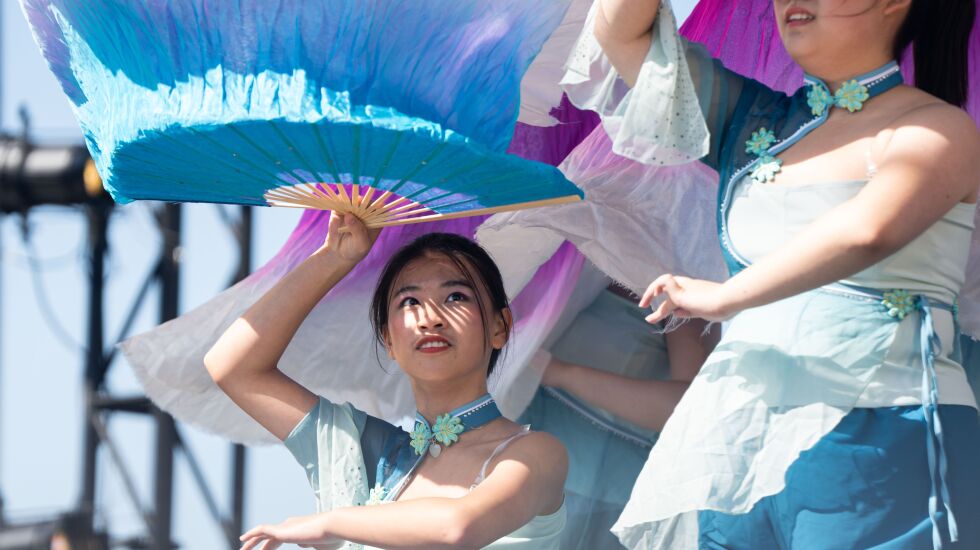 This was intentional, according to one of the group’s co-founders, Amy Xie, who decided to bring the dance “Beside the Water” out of a multiyear hiatus when the group was booked at the event again. According to her, the choreography tells the story of a little girl dancing next to a body of water, which she thought was perfect for the lakeside stage.