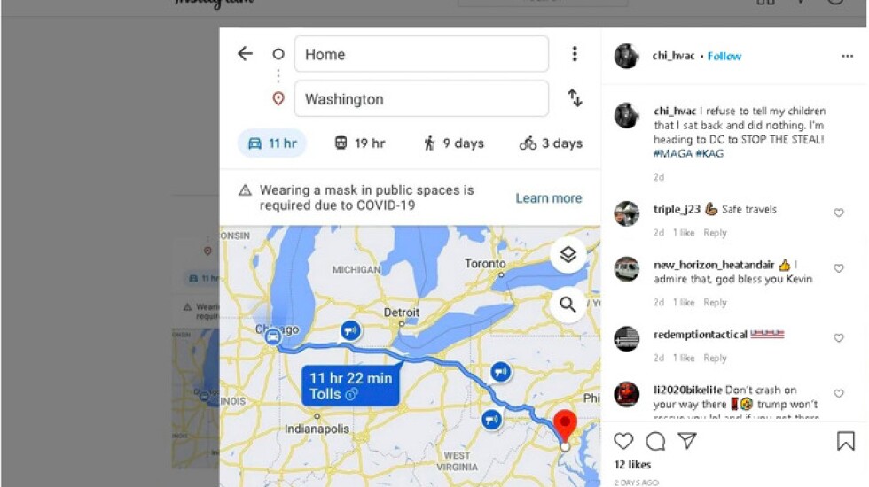 Shortly after Lyons was arrested on Chicago’s Northwest Side, federal agents showed Lyons screenshots of posts he made on Instagram, including his alleged route from Chicago to D.C. and a picture taken outside Pelosi’s office. The map was captioned, “I refuse to tell my children that I sat back and did nothing. I’m heading to DC to STOP THE STEAL!”