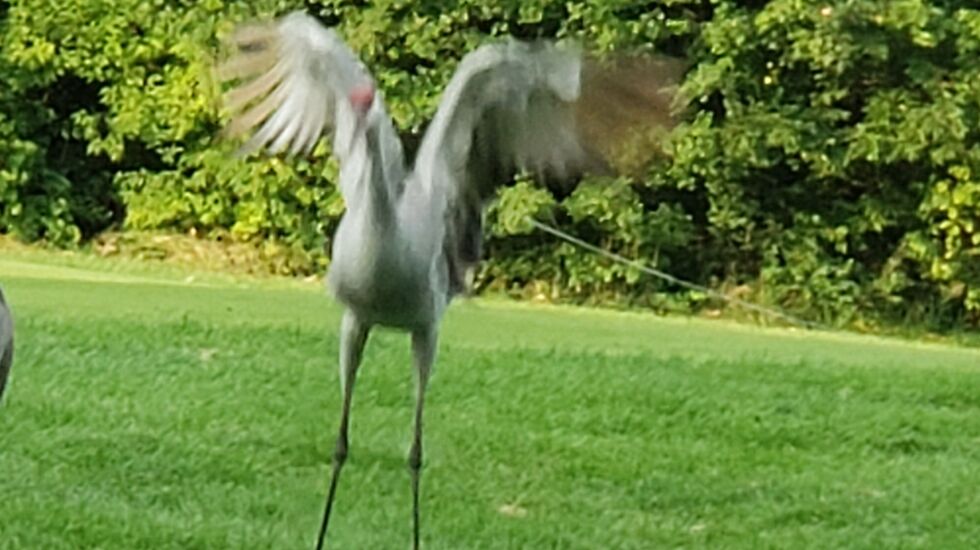 A: Sandhills are making a remarkable comeback. Dancing is usually related to mating, this time I think it is for territorial reasons.