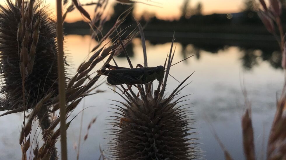 Capturing the essence of fall, Ken “Husker” O’Malley photographed this grasshopper on the drying head of teasel, an Illinois non-native, while fishing.