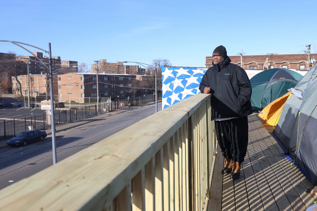 The Rev. Corey Brooks embarked in late November on a 100-day “tent-a-thon” campout in a tent perched on a deck built atop eight shipping containers on the city’s South Side A small heater is helping Brooks ward off the cold, while a stove is serving as a firepit for him and others who’ve spent nights with him to help raise awareness about violence and poverty.