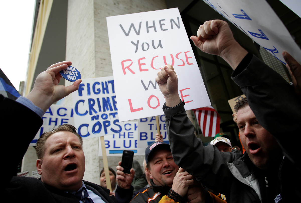 Chicago's Fraternal Order of Police organized the protest, arranging for three buses to bring members from the city’s South and North sides, said Kevin Graham, president of a local chapter of the police union.