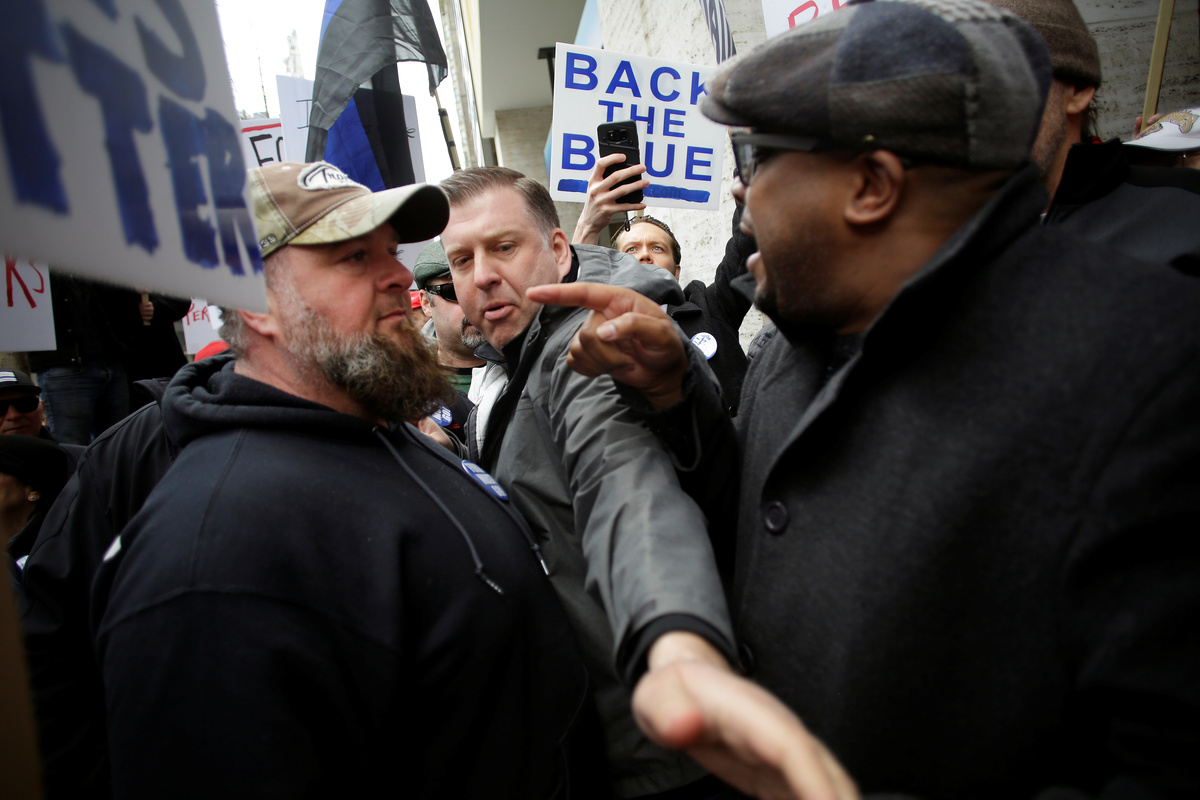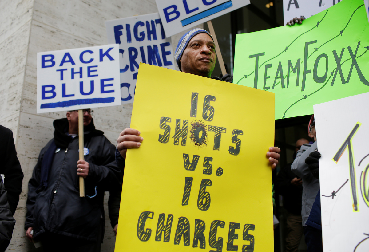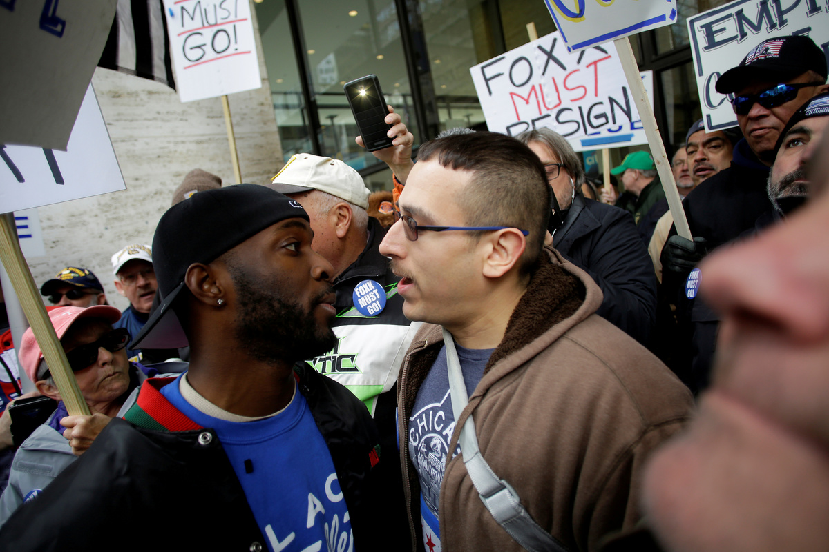 A group of protesters supporting Foxx held a rally in close proximity to the anti-Foxx demonstration. Chicago police officers on bicycles separated the two groups. The tension between the groups got testy at times, with some pushing and shoving. No arrests were reported.