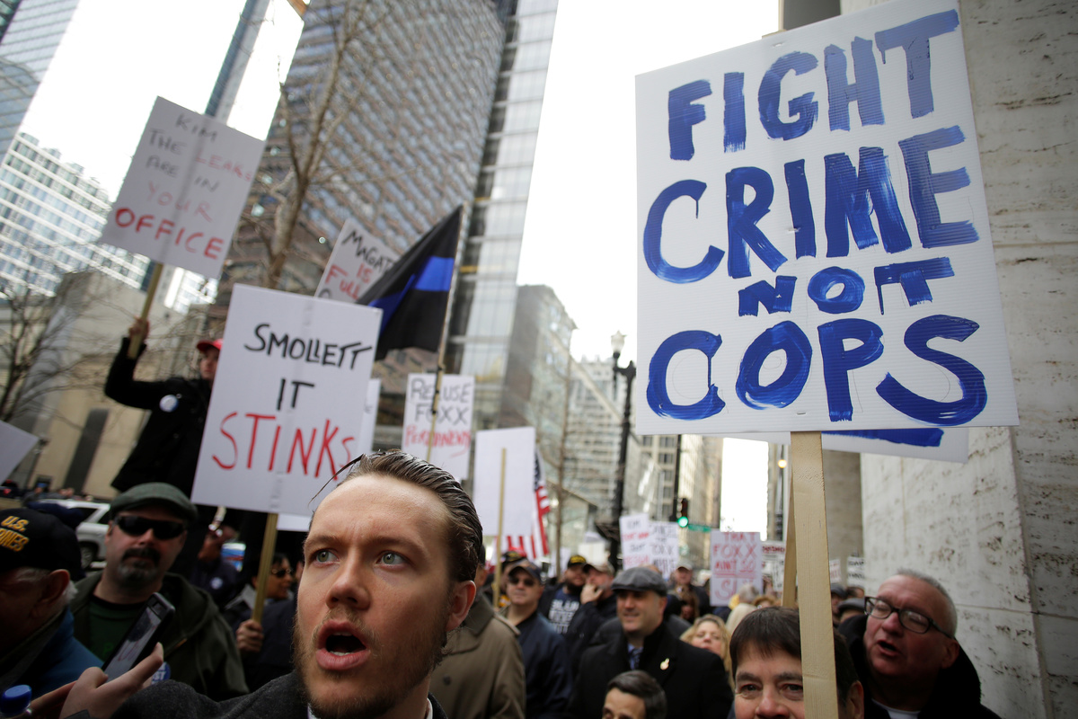 CHICAGO (Reuters) - Protesting Chicago police officers on Monday called for Cook County State’s Attorney Kim Foxx to resign after her office dropped felony charges against actor Jussie Smollett last week related to allegations that he staged a phony hate crime.
