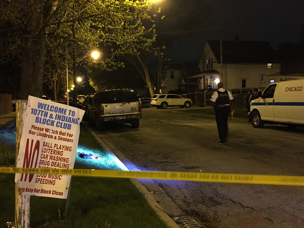 After Tuesday night's shooting, police blocked off most of Indiana between 107th and 108th streets. Officers used flashlights to search the porch of a white two-story home near an alley.