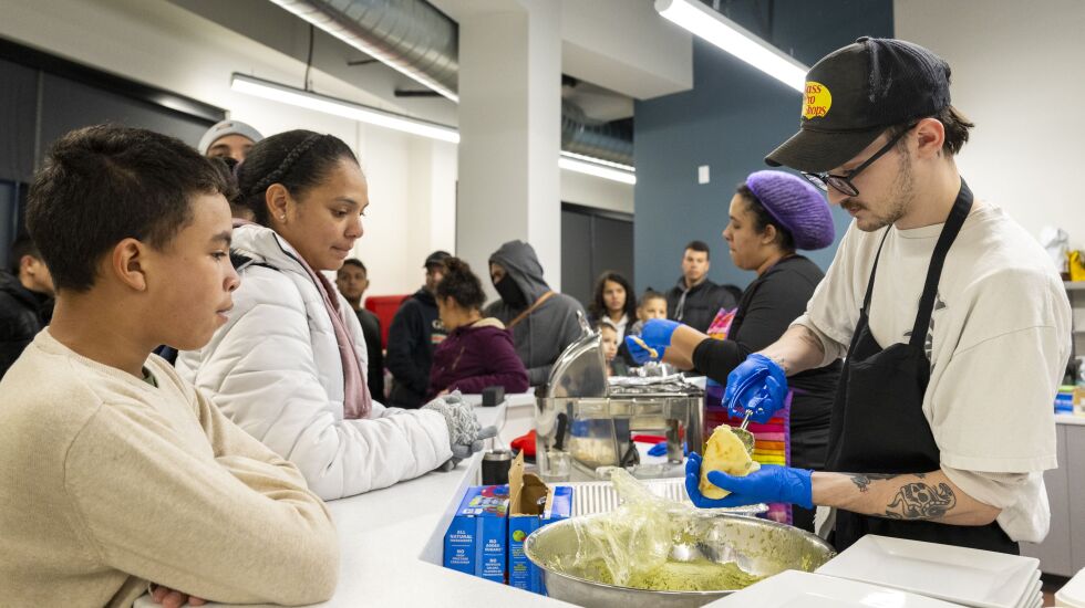 “We’re super grateful because although we’re far from home, it’s nice to sit down in a warm environment and share food from home,” Marcano said through an interpreter.