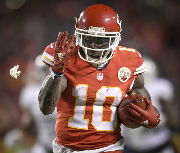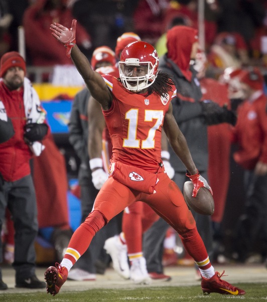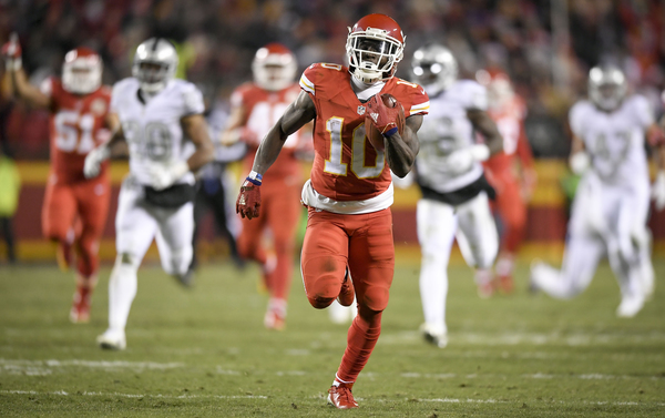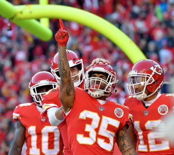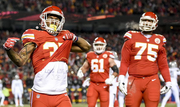 Rookie running back Kareem Hunt joined the fray as well, celebrating a 1-yard plunge that put the Chiefs ahead by 10 early in the first quarter by simulating a basketball tip-off with receiver Tyreek Hill in the end zone.
