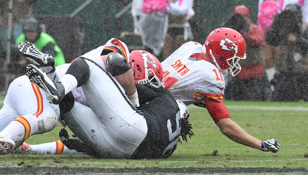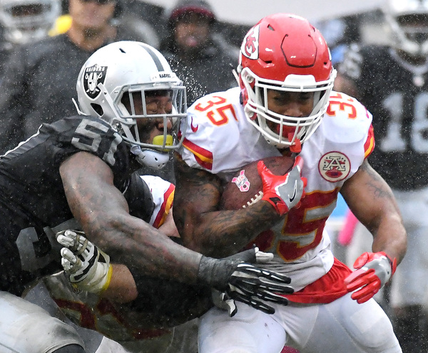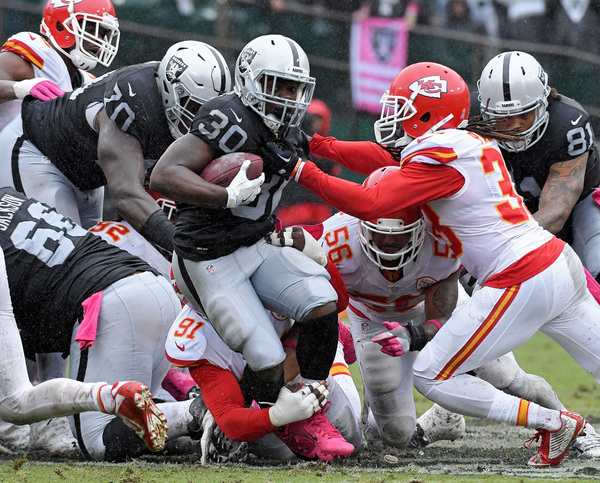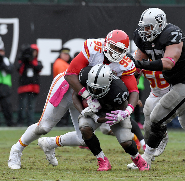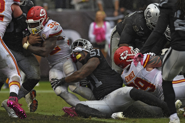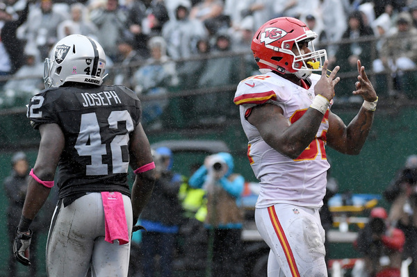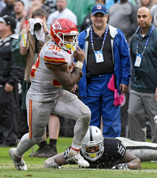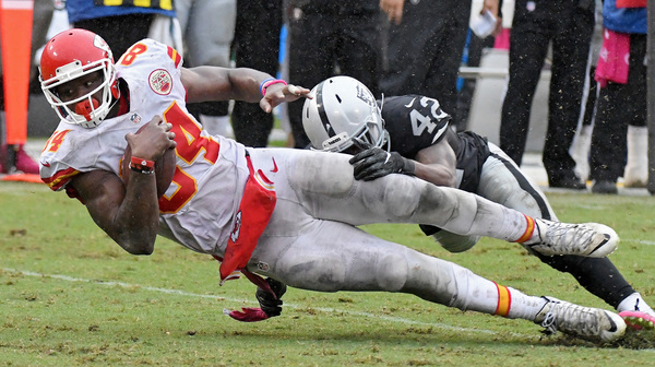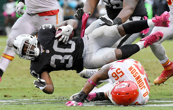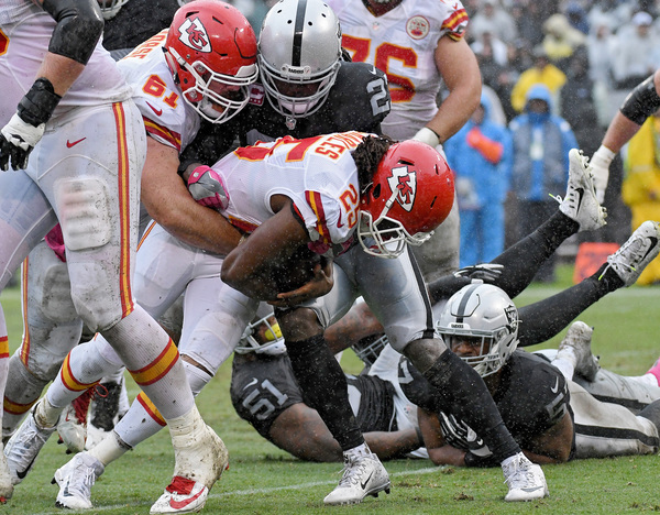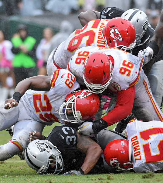 Meanwhile, the Chiefs' defense keyed in on stopping the Raiders' physical running game and largely succeeded, holding Oakland to a 3.8-yard average on 17 attempts.