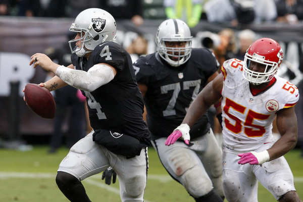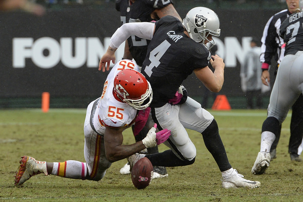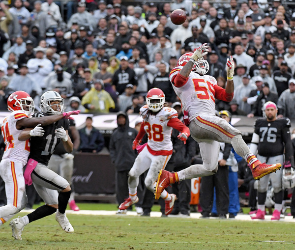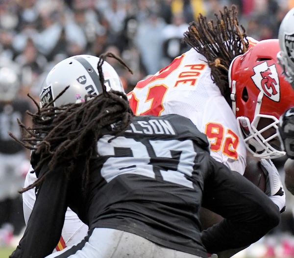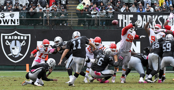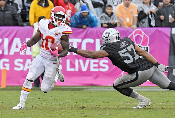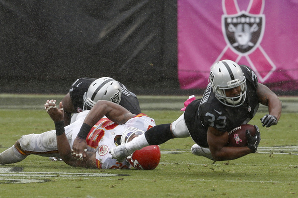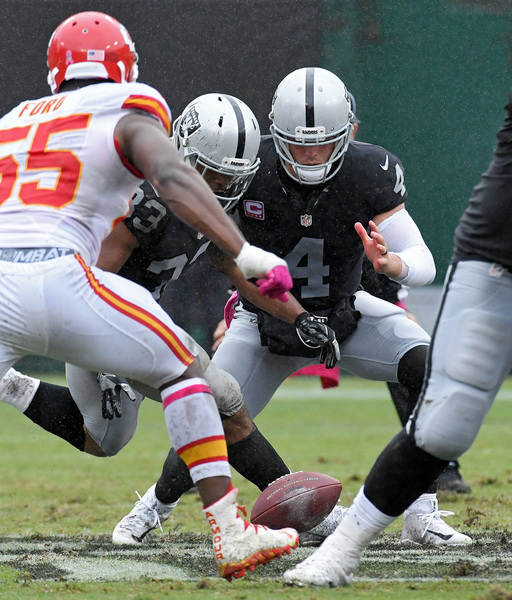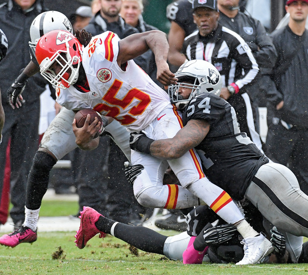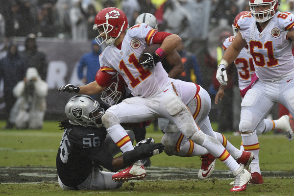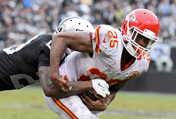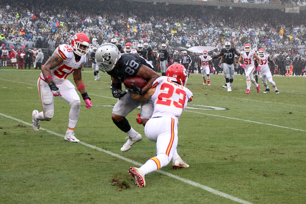Meanwhile, the Chiefs' defense keyed in on stopping the Raiders' physical running game and largely succeeded, holding Oakland to a 3.8-yard average on 17 attempts.
