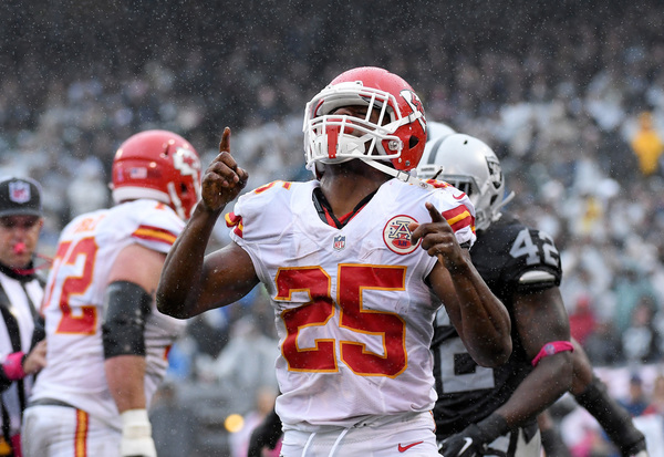 After the Raiders missed a field goal to open the second quarter, the Chiefs took the lead when running back Jamaal Charles scored his first touchdown of the season, from four yards out.