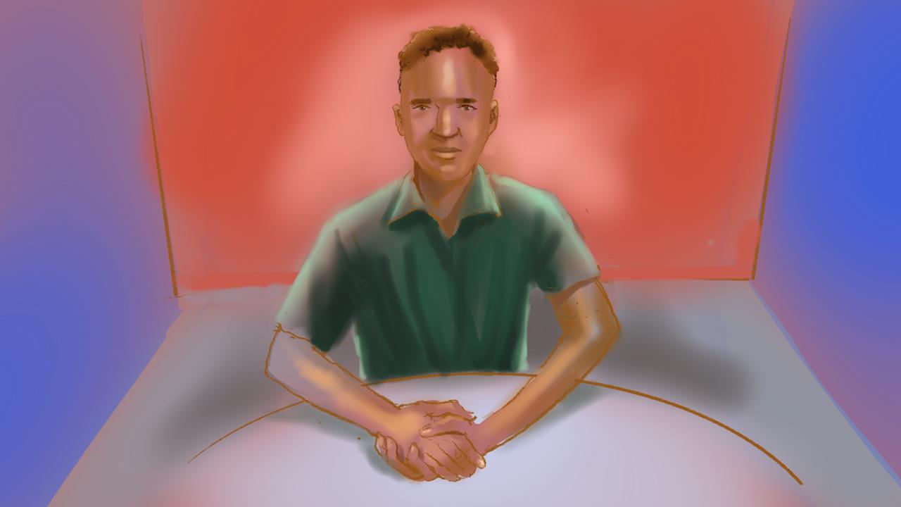 He beamed into court from a custody cell wearing a prison green T-shirt and a blank expression as he confirmed his guilty pleas.
