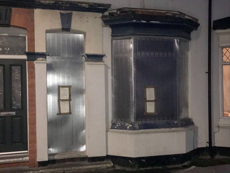 The terraced house is located on Selbourne Street in Newport, Middlesbrough. Metal screens had been erected to cover the doors and windows.