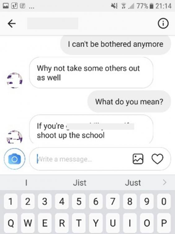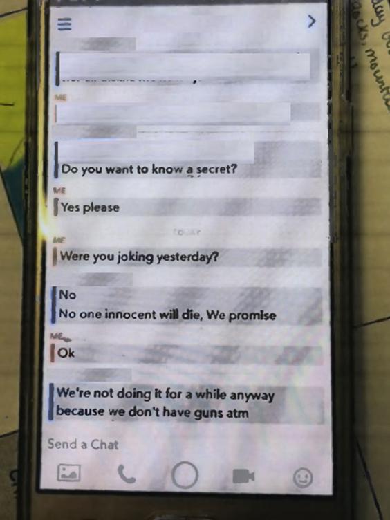 The plot surfaced when his younger accomplice told a schoolgirl that they were planning to carry out a shooting via Snapchat.