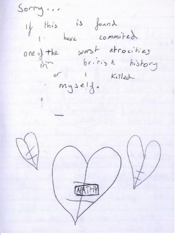 The first page read: “If this is found I have committed one of the worst atrocities in British history or I killed myself.”