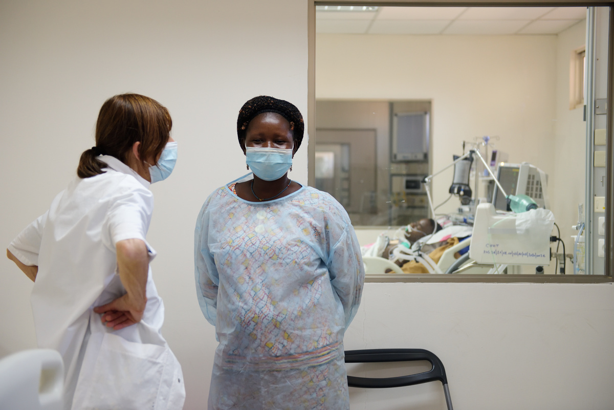 However, his mother, Amandine Abilabou, 37, is hopeful as she sees her son's condition improve after tearful, anxious days by his side.