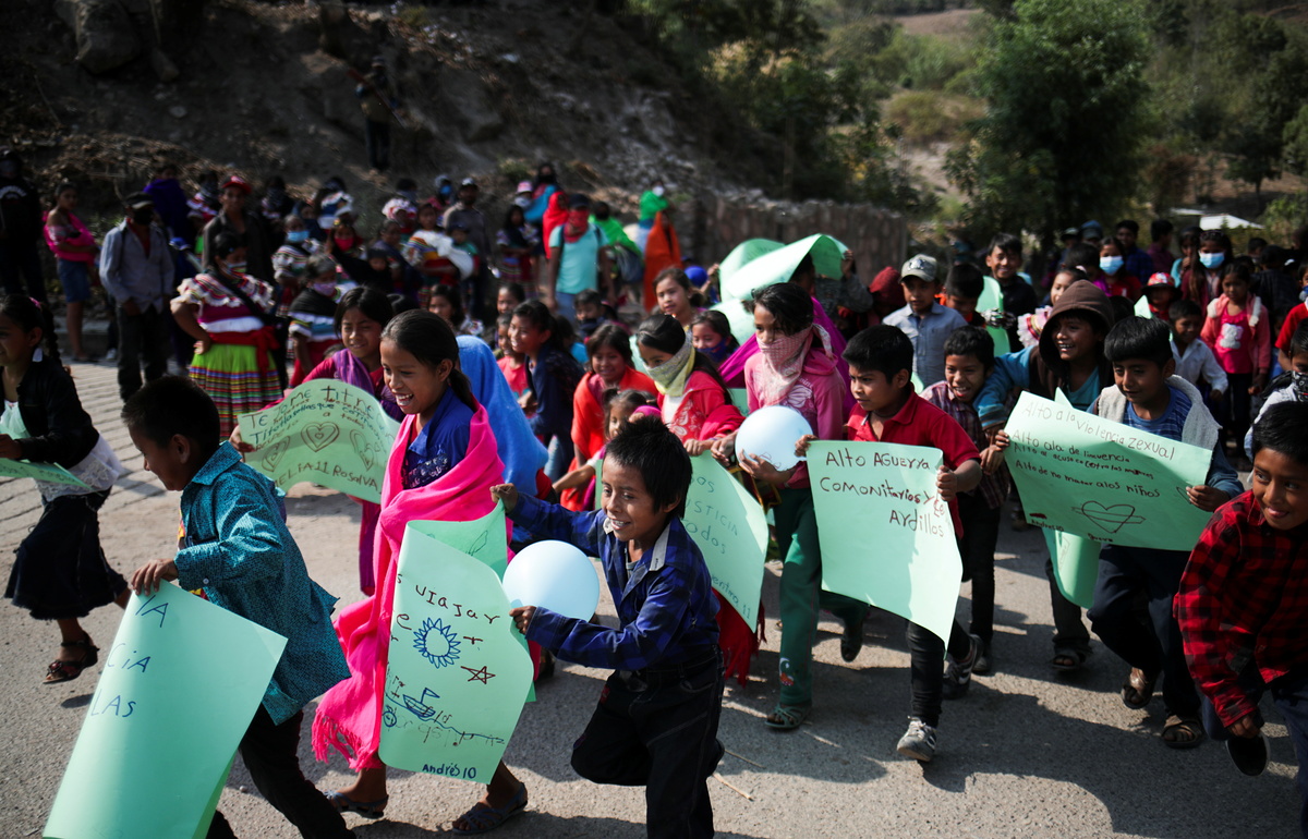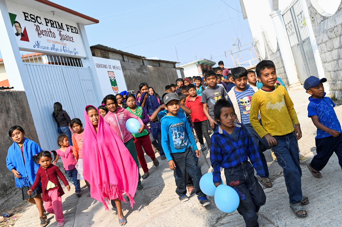 Boys and girls in Alcozacan, a hamlet in a mountainous municipality of southern Guerrero state, enthusiastically took part in a march that included adults on Friday, when Mexico celebrated Children's Day.