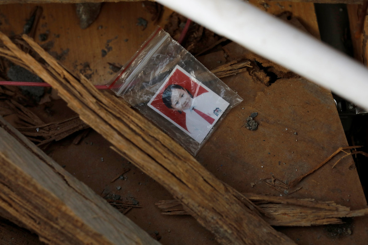 At one state high school, teenagers dressed in grey and white uniforms swept up broken glass in the classrooms. Trophies had fallen from a broken school showcase and the basketball court was cracked.