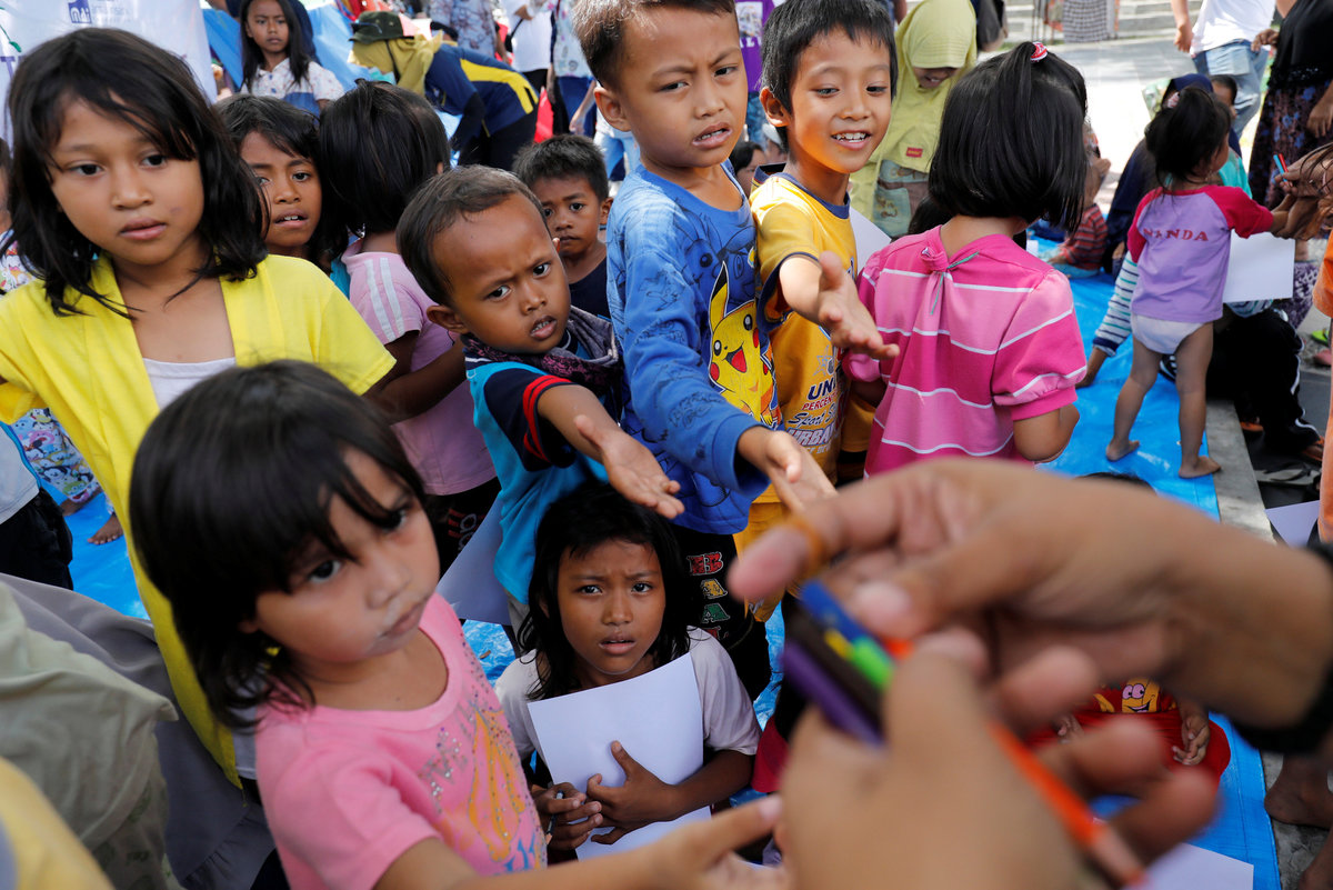 PALU, Indonesia (Reuters) - Children in the Indonesian city of Palu began returning to school on Monday to tidy up their classrooms and hopefully see their friends 10 days after a major earthquake and tsunami struck.