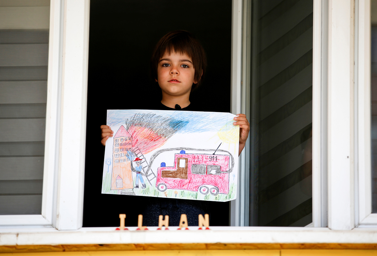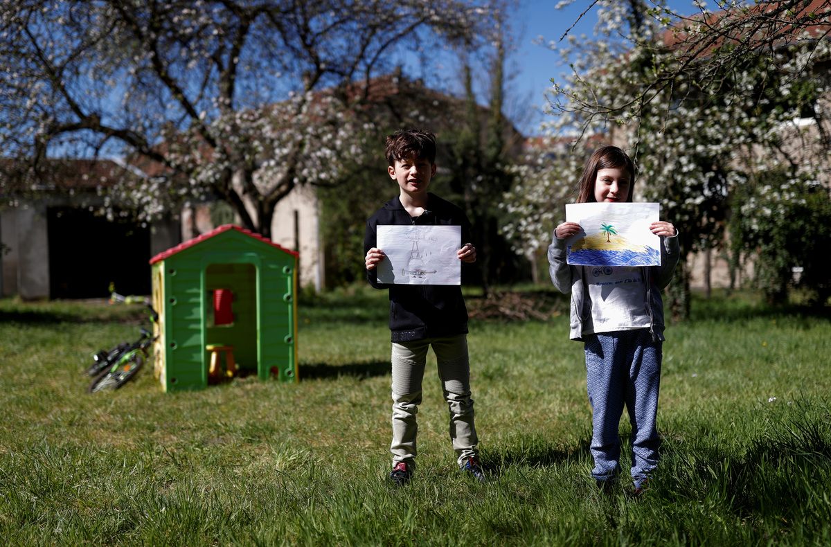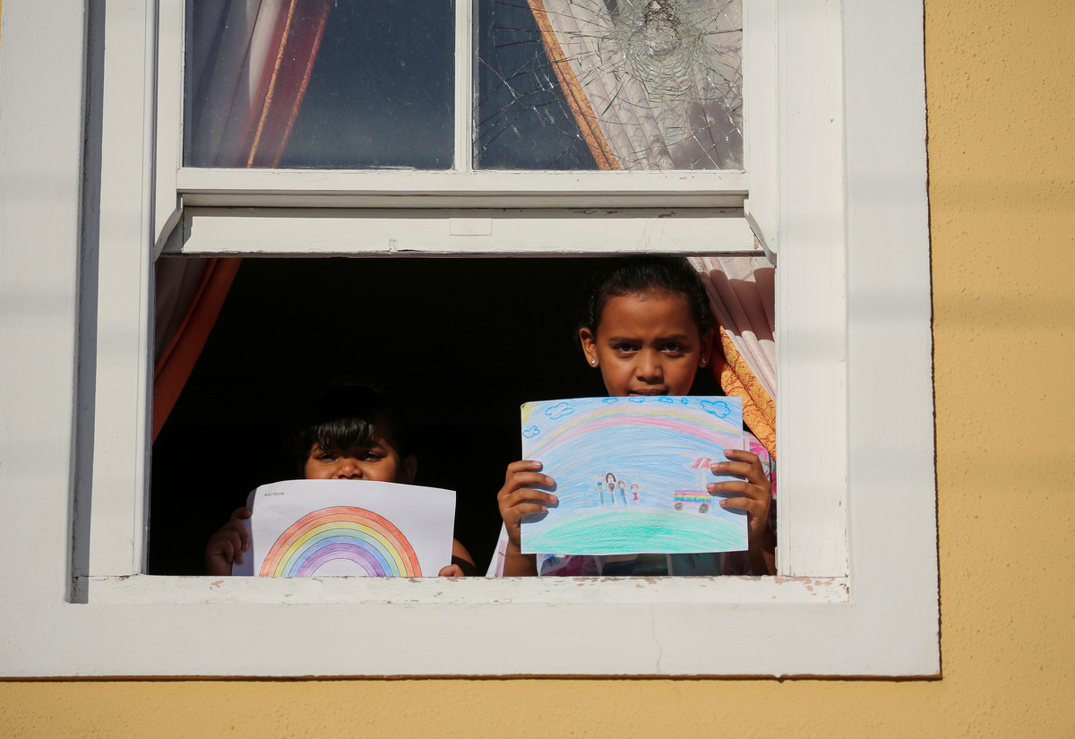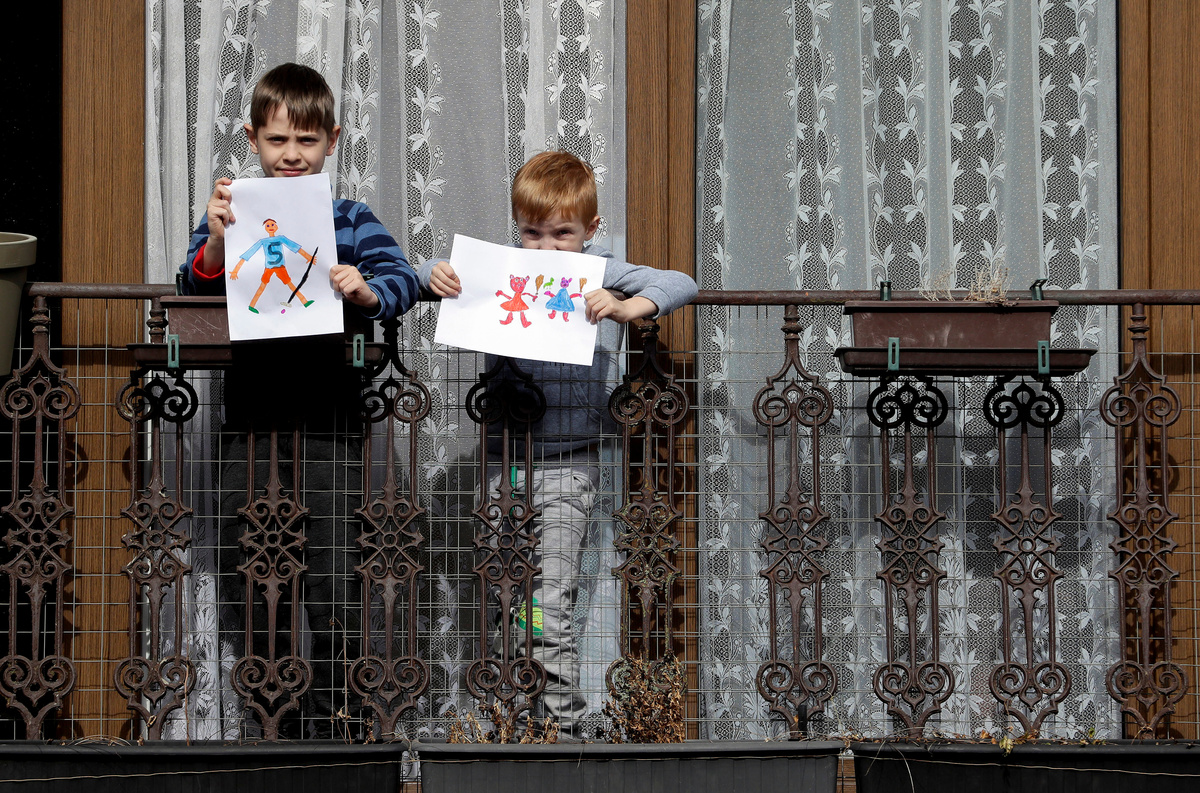 Nipoon Kitkrailard, 10, poses for a photograph while holding a picture that he drew during the coronavirus disease (COVID-19) outbreak, as he stands by a window at his home in Samut Prakan, Thailand, April 21, 2020. REUTERS/Athit Perawongmetha Li Congchen, 11, poses for a photograph while holding a picture that he drew during the coronavirus disease (COVID-19) outbreak, as he stands by a window at his grandparent's home in Beijing, China, April 19, 2020. REUTERS/Tingshu Wang Noalynne, 9, and Annelou, 10, pose for a photograph while holding pictures that they drew during the coronavirus disease (COVID-19) outbreak, as they stand by a window inside their home in Lent, Netherlands, April 18, 2020. REUTERS/Piroschka van de Wouw Arthur Klein, 9, and Zoe Klein, 6, pose for a photograph while holding pictures that they drew during the coronavirus disease (COVID-19) outbreak, as they stand in the garden of their home in Hombourg-Haut, eastern France, April 14, 2020. REUTERS/Christian Hartmann Cristofer Lucas Reyes, 7, poses for a photograph while holding a picture that he drew during the coronavirus disease (COVID-19) outbreak, as he stands in front of his home in Havana, Cuba, April 20, 2020. REUTERS/Alexandre Meneghini Half-siblings Dominik Novak, 9 and Filip Kasuba, 6, pose for a photograph while holding pictures that they drew during the coronavirus disease (COVID-19) outbreak, while standing on the balcony at their house in Nove Jirny, Czech Republic, April 15, 2020. REUTERS/David W Cerny Arianna Sorresina, 7, poses for a photograph while holding a picture that she drew during the coronavirus disease (COVID-19) outbreak, as she stands on her balcony at her home in Castiglione della Pescaia, Grosseto, Italy, April 17, 2020. REUTERS/Jennifer Lorenzini Juan, 8, and Mateo, 10, pose for a photograph while holding pictures that they drew during the coronavirus disease (COVID-19) outbreak, while standing on the balcony at their home in Buenos Aires, Argentina, April 14, 2020. REUTERS/Agustin Marcarian Come, 5, and Lilian, 9, pose for a photograph while holding pictures that they drew during the coronavirus disease (COVID-19) outbreak, as they stand in front of their house in Reze, France, April 15, 2020. REUTERS/Stephane Mahe Bashierah Moos, 5, and Hanaa Moos, 9, pose for a photograph while holding pictures that they drew during the coronavirus disease (COVID-19) outbreak, as they stand by a window at their house in Cape Town, South Africa, April 19, 2020. REUTERS/Sumaya Hisham Nasya Danial Cheng, 8, poses for a photograph while holding a picture that she drew during the coronavirus disease (COVID-19) outbreak, as she stands by a window at her home in Singapore, April 18, 2020. REUTERS/Dawn Chua Pika Kranjec, 7, poses for a photograph while holding a picture that she drew during the coronavirus disease (COVID-19) outbreak, as she stands on the terrace at her home in Naklo, Slovenia, April 17, 2020. REUTERS/Borut Zivulovic Vasilis Bekiaris, 10, and Aggeliki Bekiaris, 7, pose for a photograph while holding pictures that they drew during the coronavirus disease (COVID-19) outbreak, as they stand on the balcony of their home in Thessaloniki, Greece, April 18, 2020. REUTERS/Murad Sezer Oriana Ikladious (L), 8, and Rafaela Ikladious, 8, who are twins, pose for a photograph while holding pictures that they drew during the coronavirus disease (COVID-19) outbreak, as they stand on the balcony at their home in Sydney, Australia, April 18, 2020. REUTERS/Loren Elliott Shaurya Pratap Singh, 10, poses for a photograph while holding a picture that he drew during the coronavirus disease (COVID-19) outbreak, as he stands on the balcony at his home in New Delhi, April 18, 2020. REUTERS/Anushree Fadnavis Willem Vorbau, 14, poses for a photograph while holding pictures that he drew during the coronavirus disease (COVID-19) outbreak, outside his home in Berlin, Germany, April 19, 2020. REUTERS/Hannibal Hanschke Kyra Bajracharya, 11, poses for a photograph while holding a picture that she drew during the coronavirus disease (COVID-19) outbreak, while she stands by a window at her home in Kathmandu, Nepal, April 16, 2020. REUTERS/Navesh Chitrakar Matthew Bekele, 13, Lidya Bekele, 10, and Eviana Bekele, 4, pose for a photograph while holding pictures that they drew during the coronavirus disease (COVID-19) outbreak, with their mother Betty, as they stand on the balcony of their apartment in Munich, Germany, March 18, 2020. REUTERS/Andreas Gebert Eva and Camilla Auer pose for a photograph while holding pictures that they drew during the coronavirus disease (COVID-19) outbreak, as they stand outside their home in Lausanne, Switzerland, April 17, 2020. REUTERS/Denis Balibouse Hala al-Saaour, 4, poses for a photograph while holding a picture that she drew during the coronavirus disease (COVID-19) outbreak, with her aunt, on the balcony of her home in Damascus, Syria, April 19, 2020. REUTERS/Yamam Al Shaar Ilhan Ruvic, 5, poses for a photograph while holding a picture that he drew during the coronavirus disease (COVID-19) outbreak, by a window at his home in Zenica, Bosnia and Herzegovina, April 19, 2020. REUTERS/ Dado Ruvic