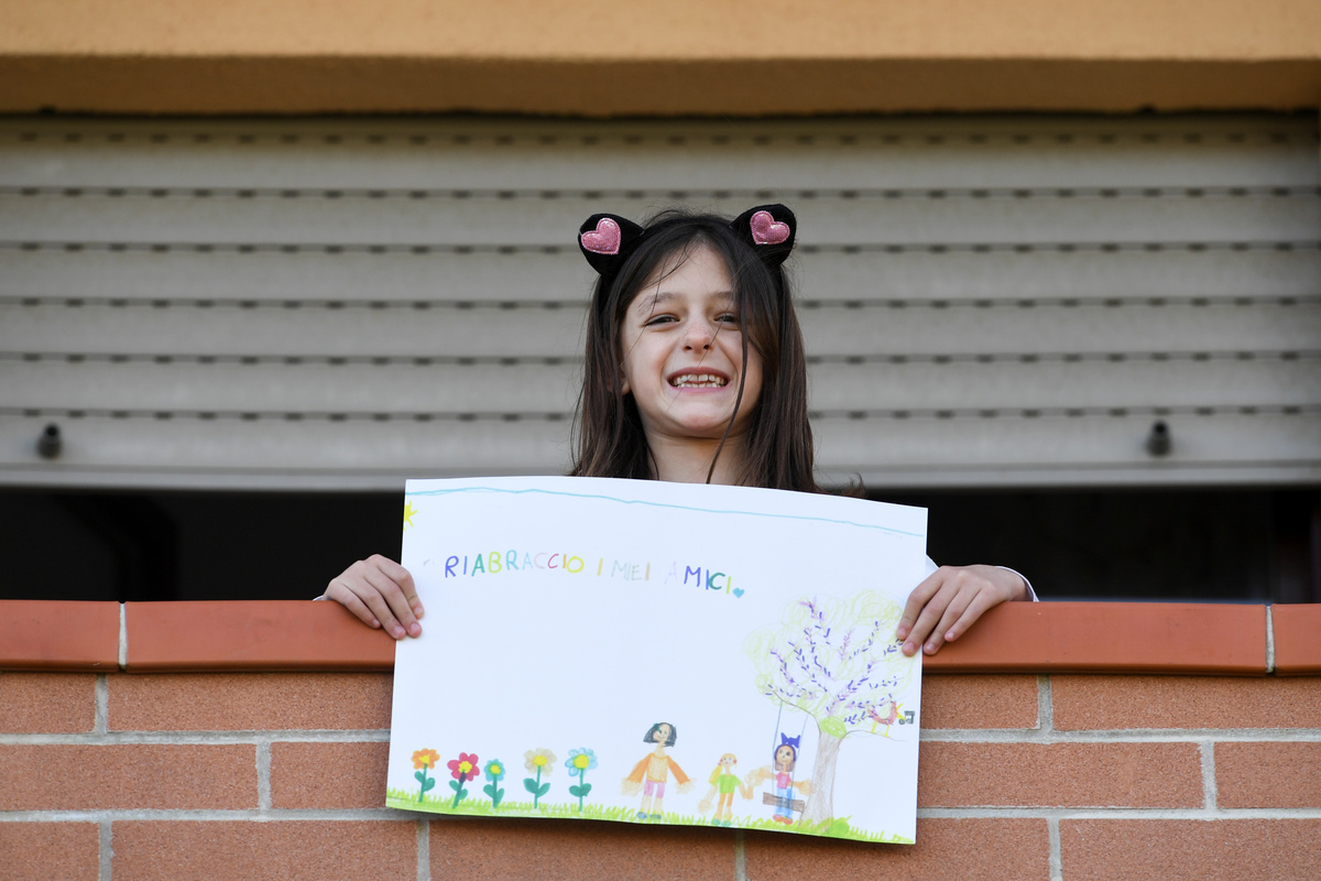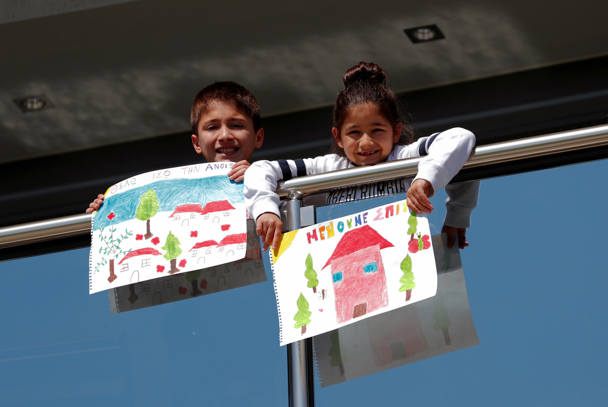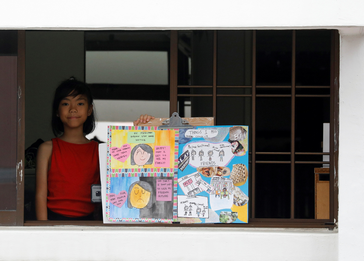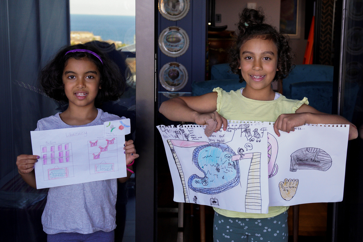 Nipoon Kitkrailard, 10, poses for a photograph while holding a picture that he drew during the coronavirus disease (COVID-19) outbreak, as he stands by a window at his home in Samut Prakan, Thailand, April 21, 2020. REUTERS/Athit Perawongmetha Li Congchen, 11, poses for a photograph while holding a picture that he drew during the coronavirus disease (COVID-19) outbreak, as he stands by a window at his grandparent's home in Beijing, China, April 19, 2020. REUTERS/Tingshu Wang Noalynne, 9, and Annelou, 10, pose for a photograph while holding pictures that they drew during the coronavirus disease (COVID-19) outbreak, as they stand by a window inside their home in Lent, Netherlands, April 18, 2020. REUTERS/Piroschka van de Wouw Arthur Klein, 9, and Zoe Klein, 6, pose for a photograph while holding pictures that they drew during the coronavirus disease (COVID-19) outbreak, as they stand in the garden of their home in Hombourg-Haut, eastern France, April 14, 2020. REUTERS/Christian Hartmann Cristofer Lucas Reyes, 7, poses for a photograph while holding a picture that he drew during the coronavirus disease (COVID-19) outbreak, as he stands in front of his home in Havana, Cuba, April 20, 2020. REUTERS/Alexandre Meneghini Half-siblings Dominik Novak, 9 and Filip Kasuba, 6, pose for a photograph while holding pictures that they drew during the coronavirus disease (COVID-19) outbreak, while standing on the balcony at their house in Nove Jirny, Czech Republic, April 15, 2020. REUTERS/David W Cerny Arianna Sorresina, 7, poses for a photograph while holding a picture that she drew during the coronavirus disease (COVID-19) outbreak, as she stands on her balcony at her home in Castiglione della Pescaia, Grosseto, Italy, April 17, 2020. REUTERS/Jennifer Lorenzini Juan, 8, and Mateo, 10, pose for a photograph while holding pictures that they drew during the coronavirus disease (COVID-19) outbreak, while standing on the balcony at their home in Buenos Aires, Argentina, April 14, 2020. REUTERS/Agustin Marcarian Come, 5, and Lilian, 9, pose for a photograph while holding pictures that they drew during the coronavirus disease (COVID-19) outbreak, as they stand in front of their house in Reze, France, April 15, 2020. REUTERS/Stephane Mahe Bashierah Moos, 5, and Hanaa Moos, 9, pose for a photograph while holding pictures that they drew during the coronavirus disease (COVID-19) outbreak, as they stand by a window at their house in Cape Town, South Africa, April 19, 2020. REUTERS/Sumaya Hisham Nasya Danial Cheng, 8, poses for a photograph while holding a picture that she drew during the coronavirus disease (COVID-19) outbreak, as she stands by a window at her home in Singapore, April 18, 2020. REUTERS/Dawn Chua Pika Kranjec, 7, poses for a photograph while holding a picture that she drew during the coronavirus disease (COVID-19) outbreak, as she stands on the terrace at her home in Naklo, Slovenia, April 17, 2020. REUTERS/Borut Zivulovic Vasilis Bekiaris, 10, and Aggeliki Bekiaris, 7, pose for a photograph while holding pictures that they drew during the coronavirus disease (COVID-19) outbreak, as they stand on the balcony of their home in Thessaloniki, Greece, April 18, 2020. REUTERS/Murad Sezer Oriana Ikladious (L), 8, and Rafaela Ikladious, 8, who are twins, pose for a photograph while holding pictures that they drew during the coronavirus disease (COVID-19) outbreak, as they stand on the balcony at their home in Sydney, Australia, April 18, 2020. REUTERS/Loren Elliott Shaurya Pratap Singh, 10, poses for a photograph while holding a picture that he drew during the coronavirus disease (COVID-19) outbreak, as he stands on the balcony at his home in New Delhi, April 18, 2020. REUTERS/Anushree Fadnavis Willem Vorbau, 14, poses for a photograph while holding pictures that he drew during the coronavirus disease (COVID-19) outbreak, outside his home in Berlin, Germany, April 19, 2020. REUTERS/Hannibal Hanschke Kyra Bajracharya, 11, poses for a photograph while holding a picture that she drew during the coronavirus disease (COVID-19) outbreak, while she stands by a window at her home in Kathmandu, Nepal, April 16, 2020. REUTERS/Navesh Chitrakar Matthew Bekele, 13, Lidya Bekele, 10, and Eviana Bekele, 4, pose for a photograph while holding pictures that they drew during the coronavirus disease (COVID-19) outbreak, with their mother Betty, as they stand on the balcony of their apartment in Munich, Germany, March 18, 2020. REUTERS/Andreas Gebert Eva and Camilla Auer pose for a photograph while holding pictures that they drew during the coronavirus disease (COVID-19) outbreak, as they stand outside their home in Lausanne, Switzerland, April 17, 2020. REUTERS/Denis Balibouse Hala al-Saaour, 4, poses for a photograph while holding a picture that she drew during the coronavirus disease (COVID-19) outbreak, with her aunt, on the balcony of her home in Damascus, Syria, April 19, 2020. REUTERS/Yamam Al Shaar Ilhan Ruvic, 5, poses for a photograph while holding a picture that he drew during the coronavirus disease (COVID-19) outbreak, by a window at his home in Zenica, Bosnia and Herzegovina, April 19, 2020. REUTERS/ Dado Ruvic