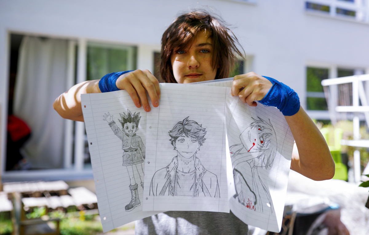 His older sister Yaya, 12, has drawn a picture of herself and a friend. "What I want to do the most right now is hang out with my friends."