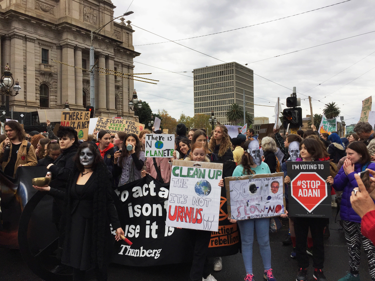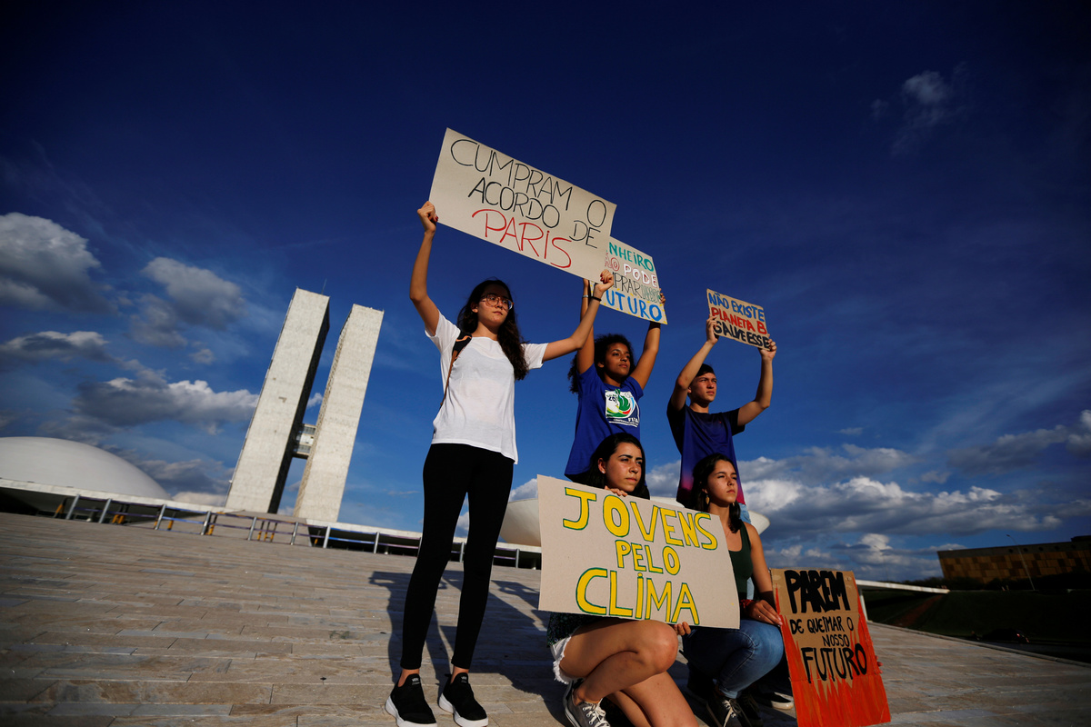 Young people who took time off school to protest on Friday urged adults to heed calls by climate activists for a global general strike on Sept. 20.