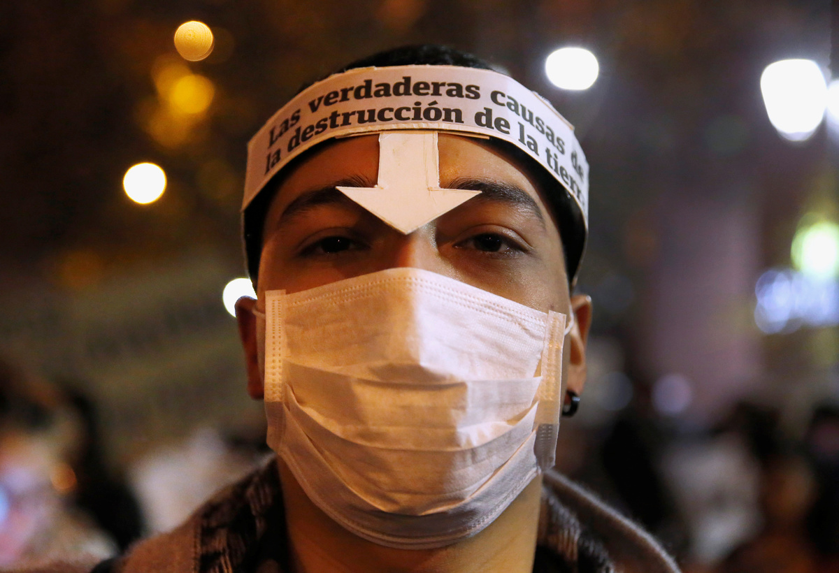 The protesters held a "die-in" in Times Square, lying on the ground for 11 minutes to represent the 11 years scientists have said it may take for earth's temperature to rise to an irreversible tipping point if carbon emissions are not substantially cut.