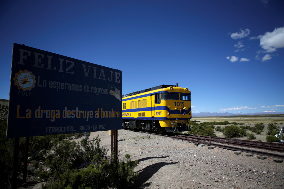 Sixteen cars filled with 410 tonnes of iron coils were hauled by what will be called the Ferrocarril Arica-La Paz train line. Tensions have simmered for decades between the two countries as Bolivia laments its lack of access to the Pacific.