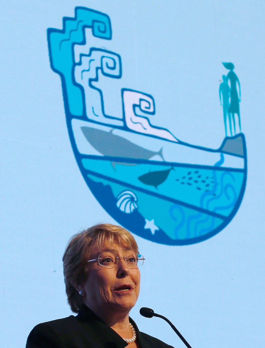Chile's President Michelle Bachelet speaks during a meeting of the 4th International Marine Protected Areas Congress (IMPAC4) in Vina del Mar, Chile, September 9, 2017. REUTERS/Rodrigo GarridoChile's President Michelle Bachelet speaks during a meeting of the 4th International Marine Protected Areas Congress (IMPAC4) in Vina del Mar, Chile, September 9, 2017. REUTERS/Rodrigo GarridoChile's President Michelle Bachelet (2nd R) smiles as she is flanked by Chile's Environmental Minister Marcelo Mena (R), Monaco's Prince Albert (L) and Chile's Foreign Minister Heraldo Munoz (2nd L) during a meeting of the 4th International Marine Protected Areas Congress (IMPAC4) in Vina del Mar Chile, September 9, 2017. REUTERS/Rodrigo GarridoFILE PHOTO: A view of "Moai" statues in Rano Raraku volcano, on Easter Island, Chile October 31, 2003. Members of the rapanui ethnic group approved the creation of a 700,000 square kilometers protected marine area for the protection of their ecosystem, according to Chilean government. REUTERS/Carlos Barria/File photo