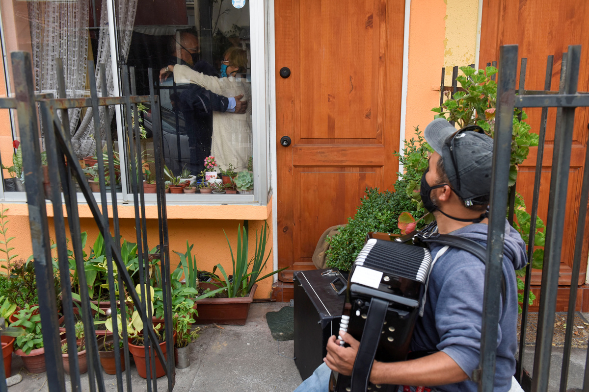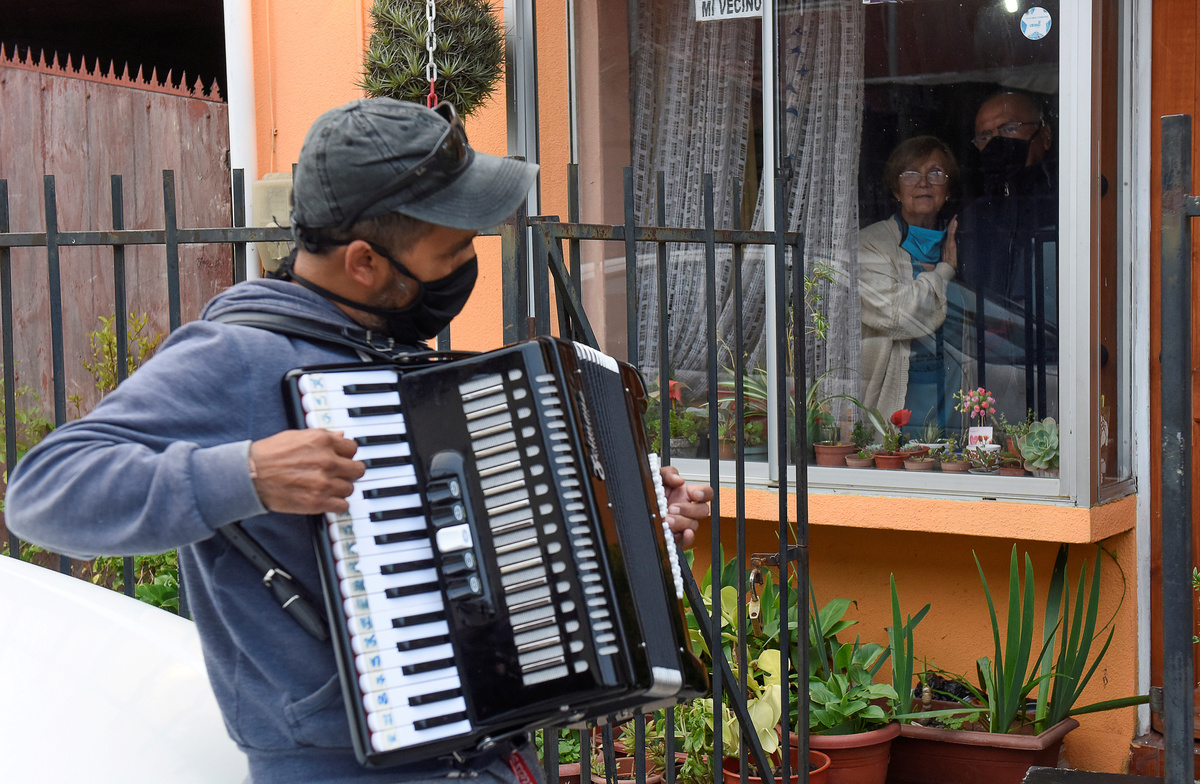 Every evening, Acuna, who hails from the central Chilean city of Hualpen, serenades his parents, who watch from behind the safety of their front window, dancing and laughing to the music.