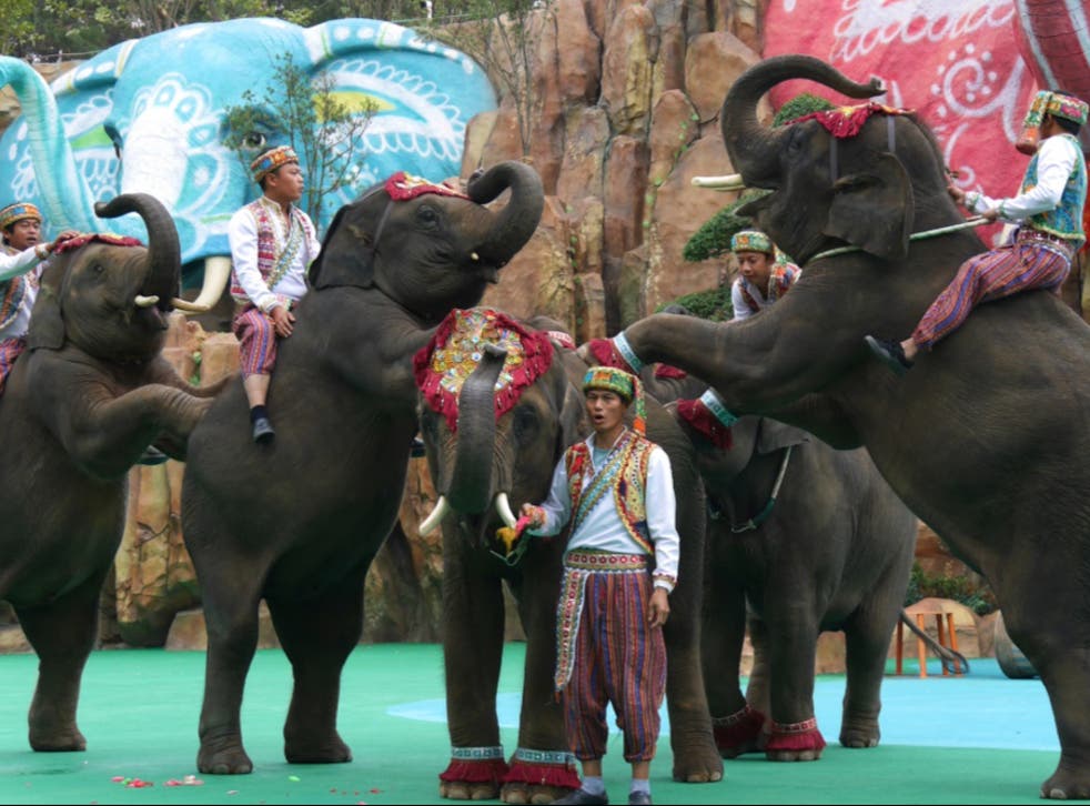 Critics of China’s zoos and entertainment parks say painful training methods are used to teach elephants to “perform tricks”.