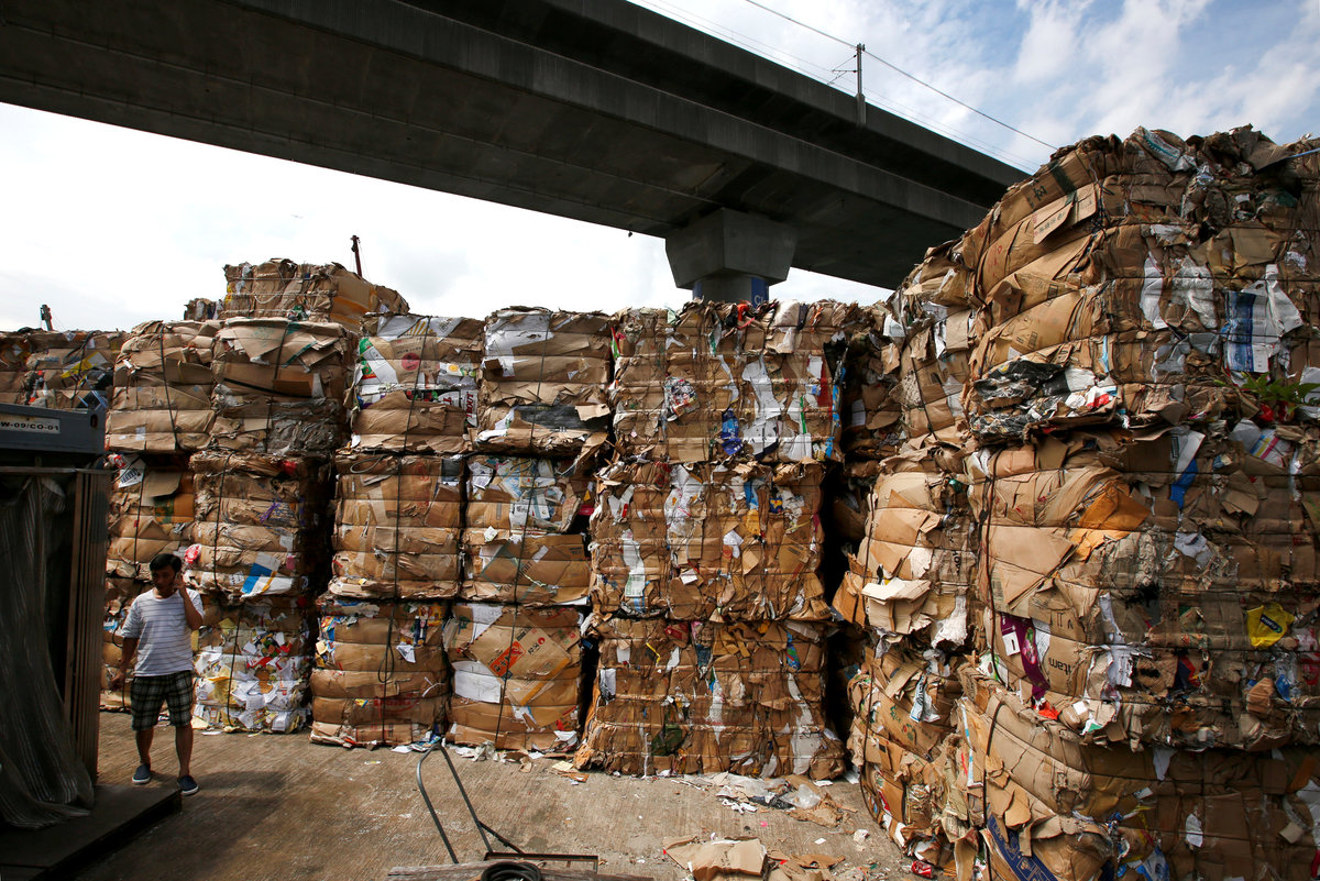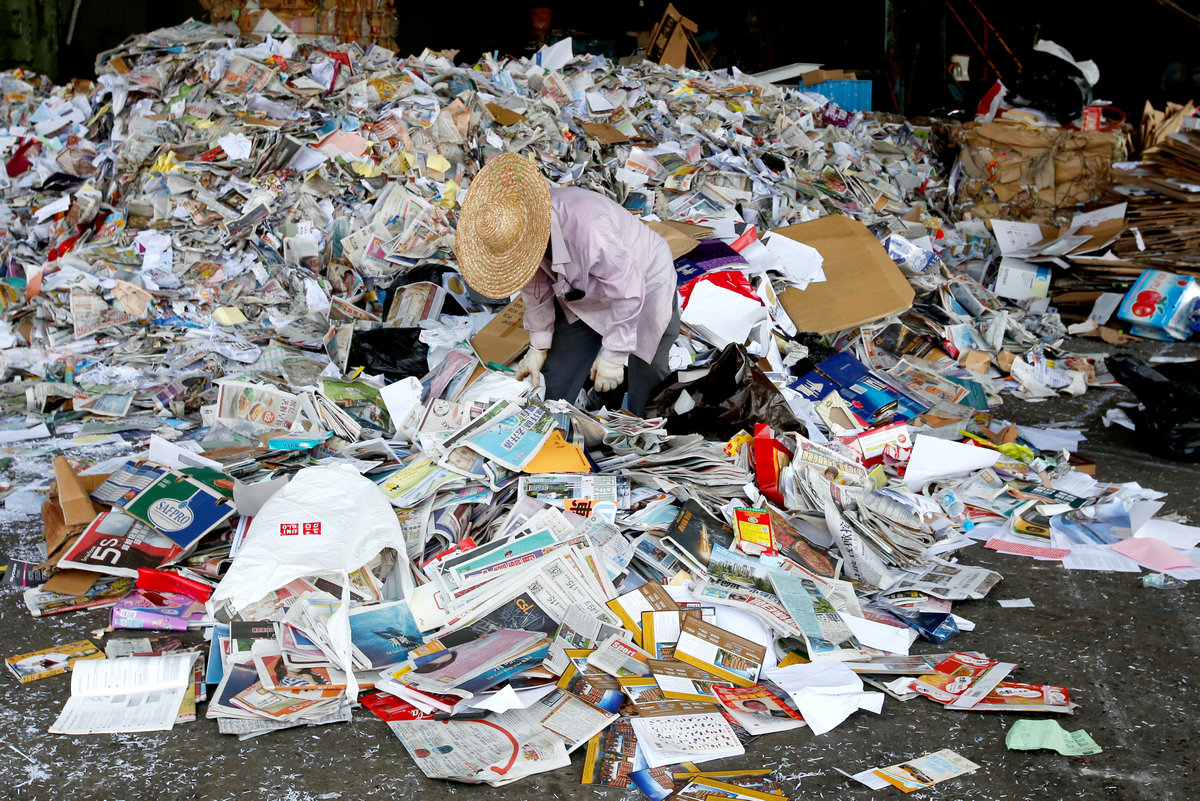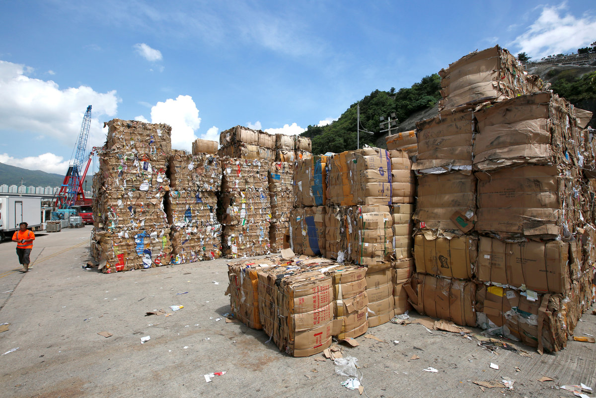 HONG KONG (Reuters) - Huge mountains of old newspapers, cardboard and office scrap paper are piling up on Hong Kong's docks and its waste-paper collection sites are at bursting point. A flotilla of cargo ships laden with paper meant for recycling has been stuck for weeks in local waters.