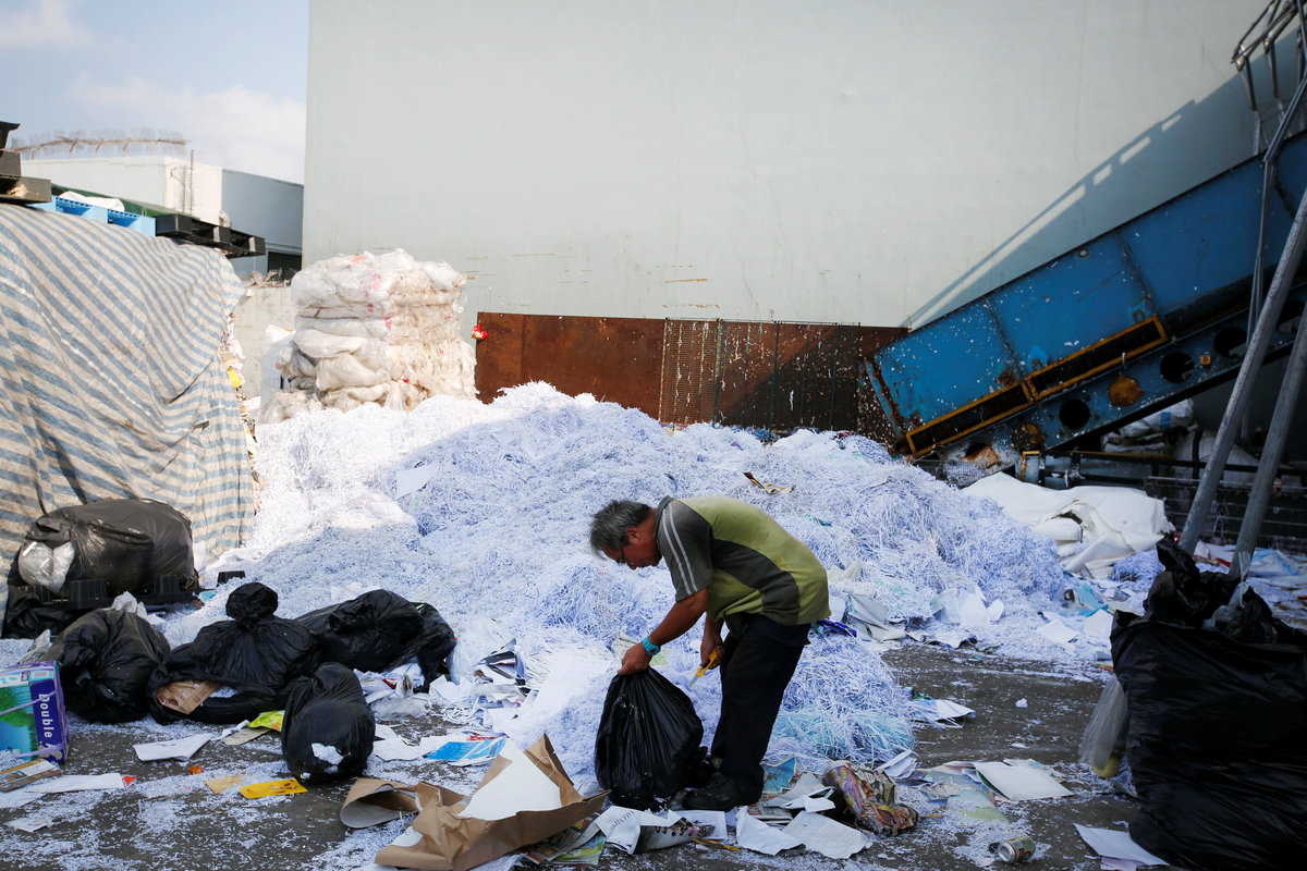 For now, as Hong Kong's paper mountains grow daily, many of the city's invariably elderly paper collectors say they've seen a vital source of income halve in some cases, with many recyclers no longer accepting scrap as the uncertainty lingers.