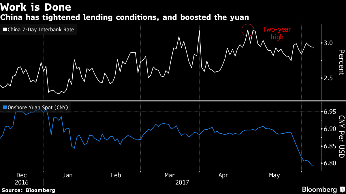 The International Monetary Fund was the latest to acknowledge China’s improved outlook, raising its growth forecast for 2017 for a second time this year to 6.7 percent on Wednesday. Hours earlier, data showed industrial output steadied in May and the consumer remained a prop for growth, while a pull-back in property investment suggested curbs were starting to bite.