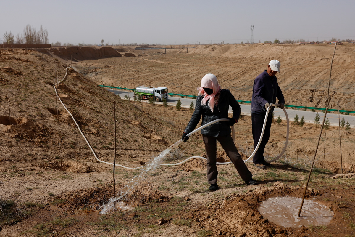 "The more the forest expands, the more it eats into the sands, the better it is for us," said Wang's son, Wang Yinji, 53, who has taken over much of the backbreaking farming and planting while his father recovers from illness.