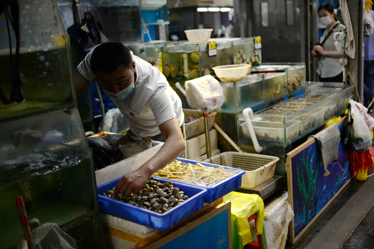 Among the patients who work at the Xinfadi market, most serve at seafood and aquatic product stalls, followed by the beef and mutton section, and patients from the seafood market showed symptoms earlier than others, Wu Zunyou, chief epidemiologist at the Chinese Center for Disease Control and Prevention, said at a daily briefing on Thursday.