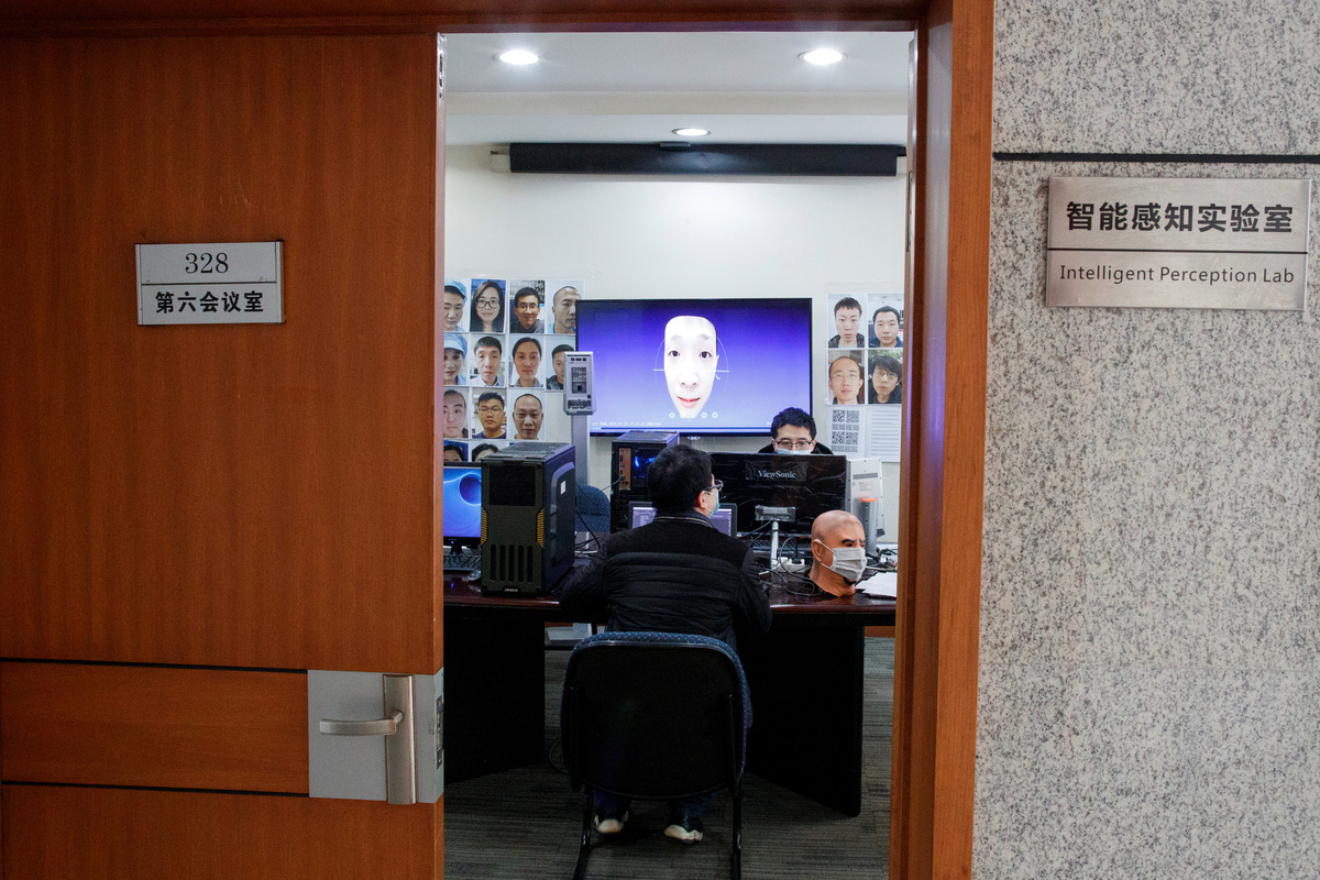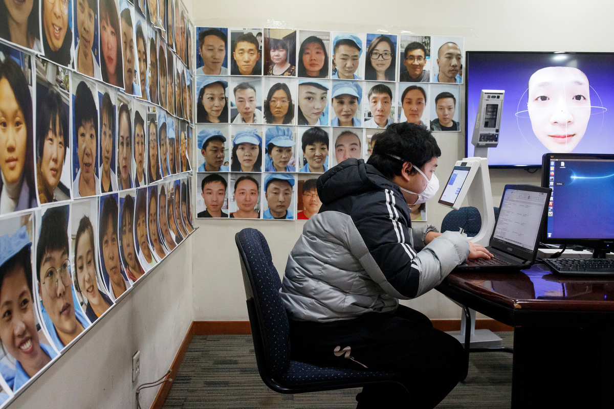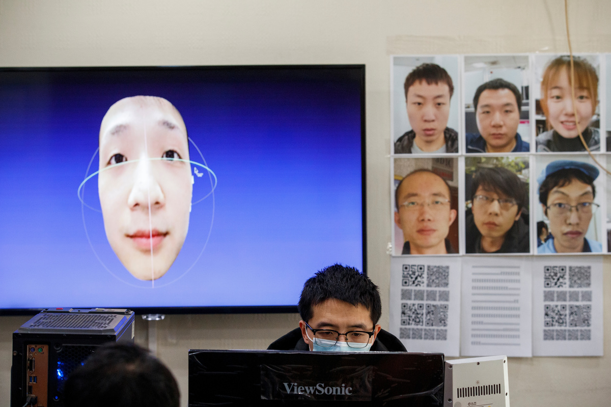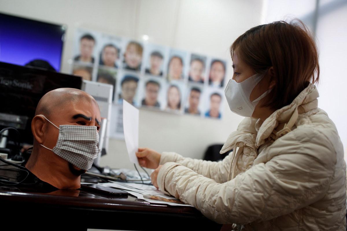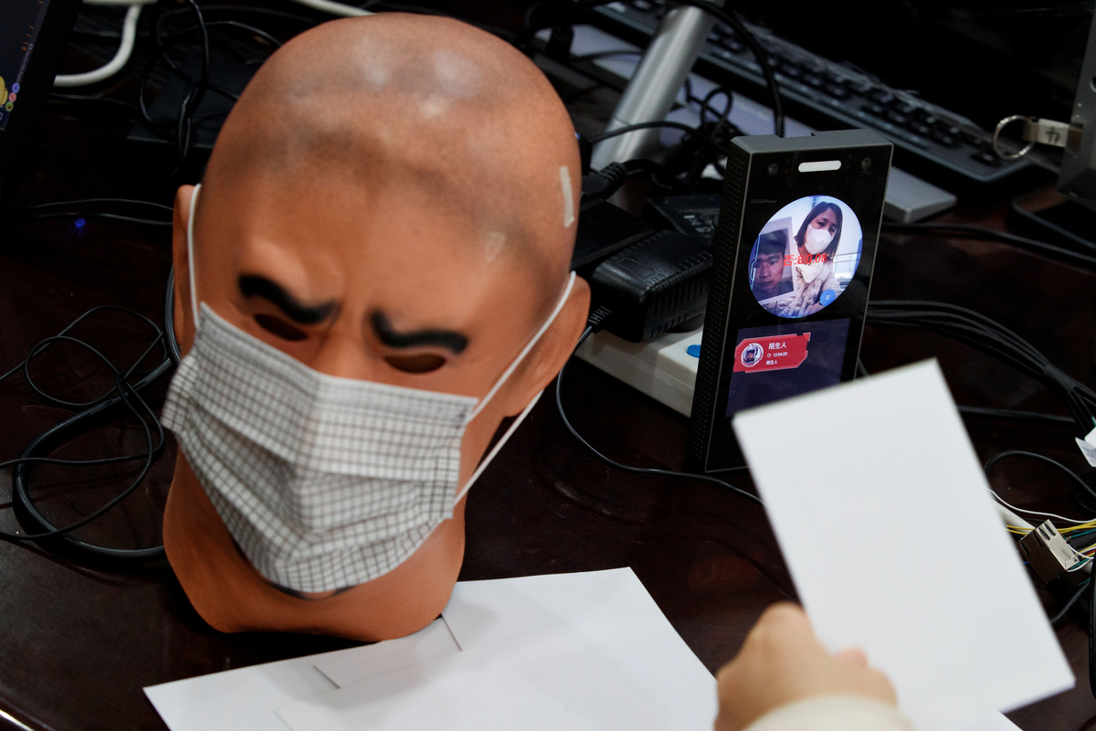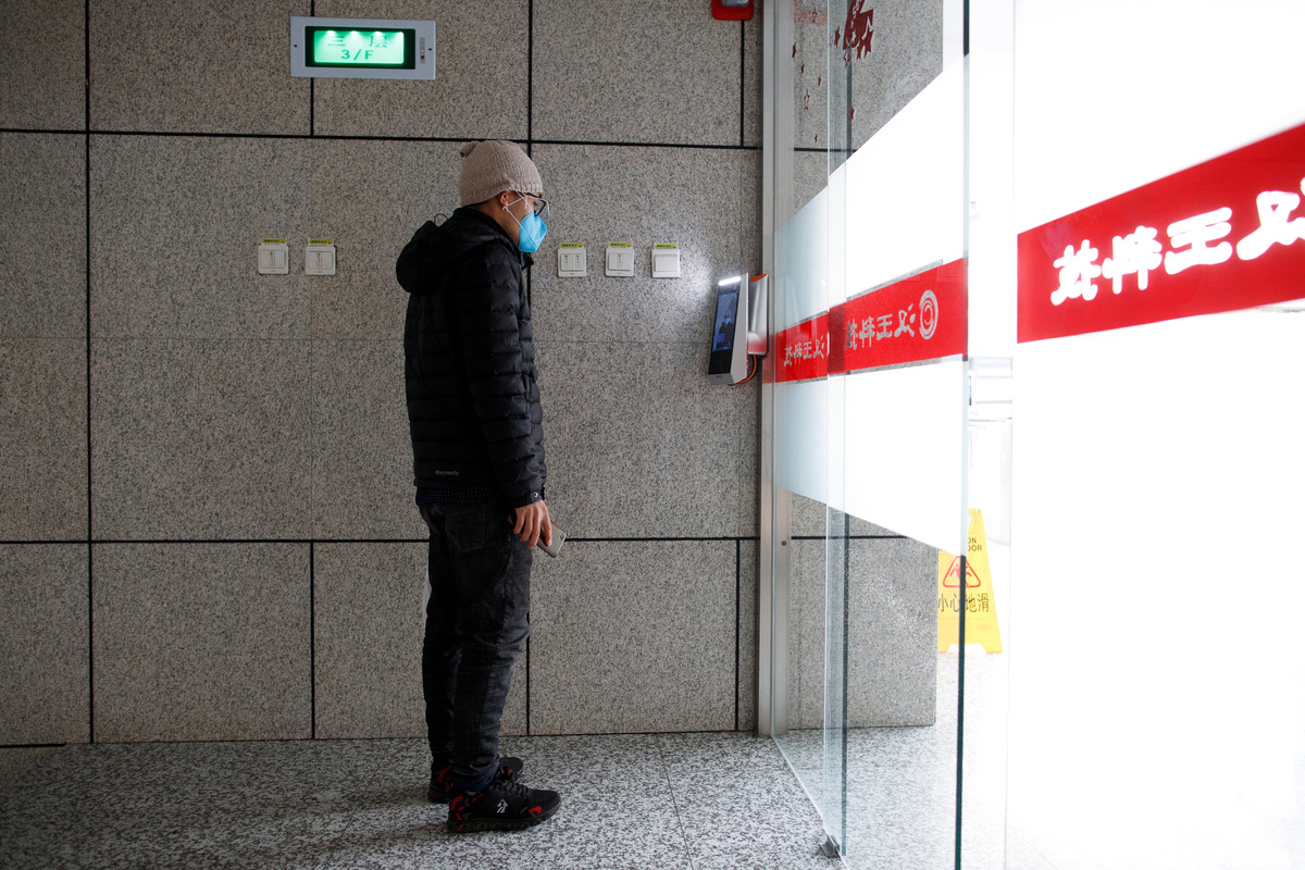 A software engineer tests a facial recognition program that identifies people when they wear a face mask at the development lab of the Chinese electronics manufacturer Hanwang (Hanvon) Technology in Beijing as the country is hit by an outbreak of the novel coronavirus (COVID-19), China, March 6, 2020. Picture taken March 6, 2020. REUTERS/Thomas PeterA woman has her face scanned by a facial recognition device that identifies people when they wear masks to gain access to the office of the Chinese electronics manufacturer Hanwang (Hanvon) Technology in Beijing as the country is hit by an outbreak of the novel coronavirus (COVID-19), China, March 6, 2020. Picture taken March 6, 2020. REUTERS/Thomas PeterA man has his face scanned by a facial recognition device that identifies people when they wear masks to gain access to the office of the Chinese electronics manufacturer Hanwang (Hanvon) Technology in Beijing as the country is hit by an outbreak of the novel coronavirus (COVID-19), China, March 6, 2020. Picture taken March 6, 2020. REUTERS/Thomas Peter